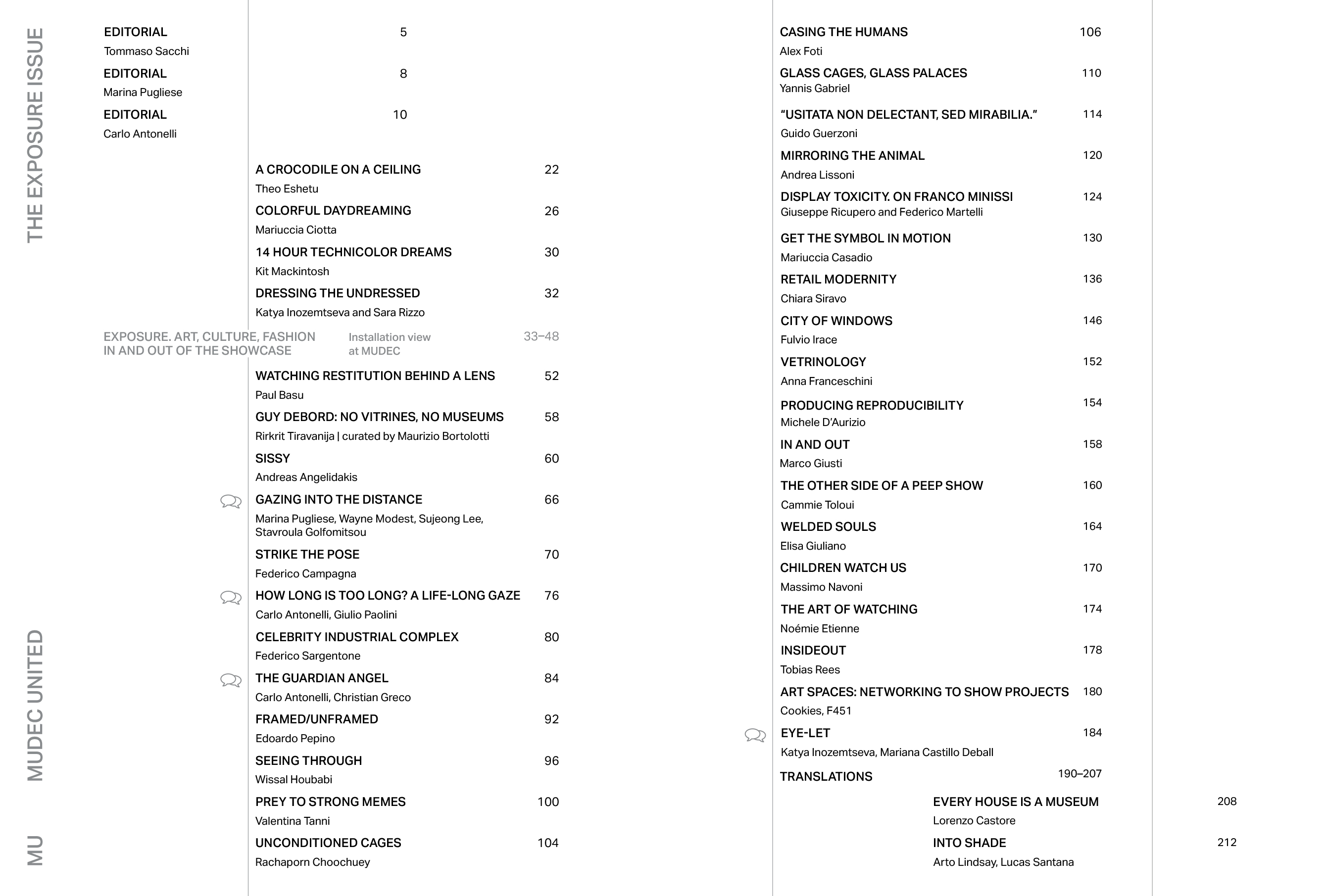 In relation to the exhibition EXPOSURE. Art, culture, fashion in and out of the showcase (MUDEC, Mar. 1–Sept. 8, 2024), the second issue of MUdec United addresses the theme of display, from questions of exhibition-making to a broader reflection on vision and desire.