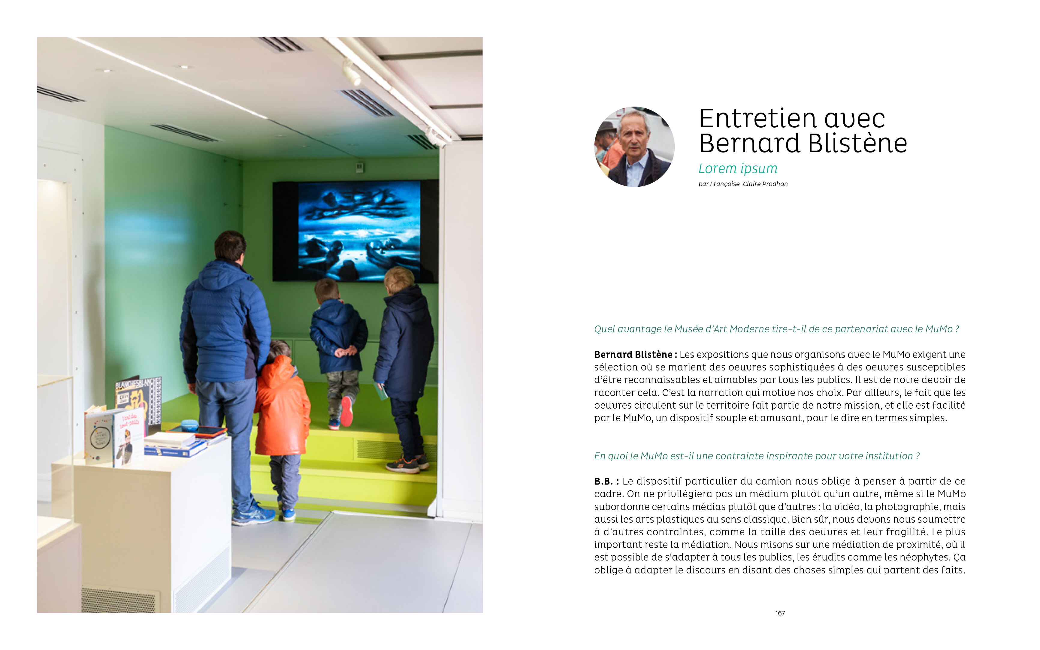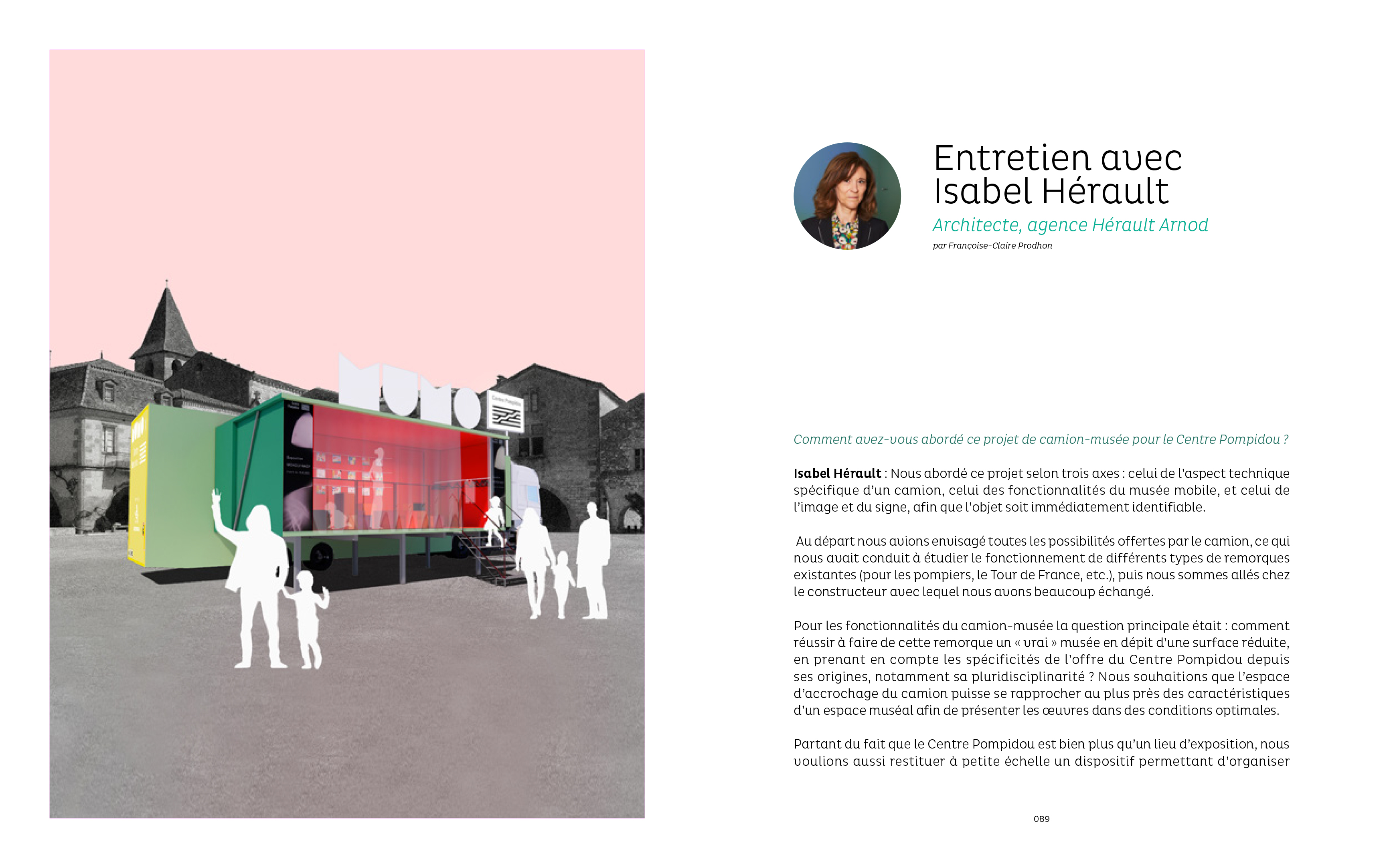The new adventure of the Musée Mobile (a traveling museum aimed at making contemporary art accessible to those who are far from it, from the earliest age, that has been touring France, Europe and Africa since 2011), in partnership with the Centre Pompidou: the first museum truck dedicated to Europe's largest collection of modern and contemporary art, designed by architect Isabel Hérault and artist Krijn de Koning, travelling to various regions and villages.