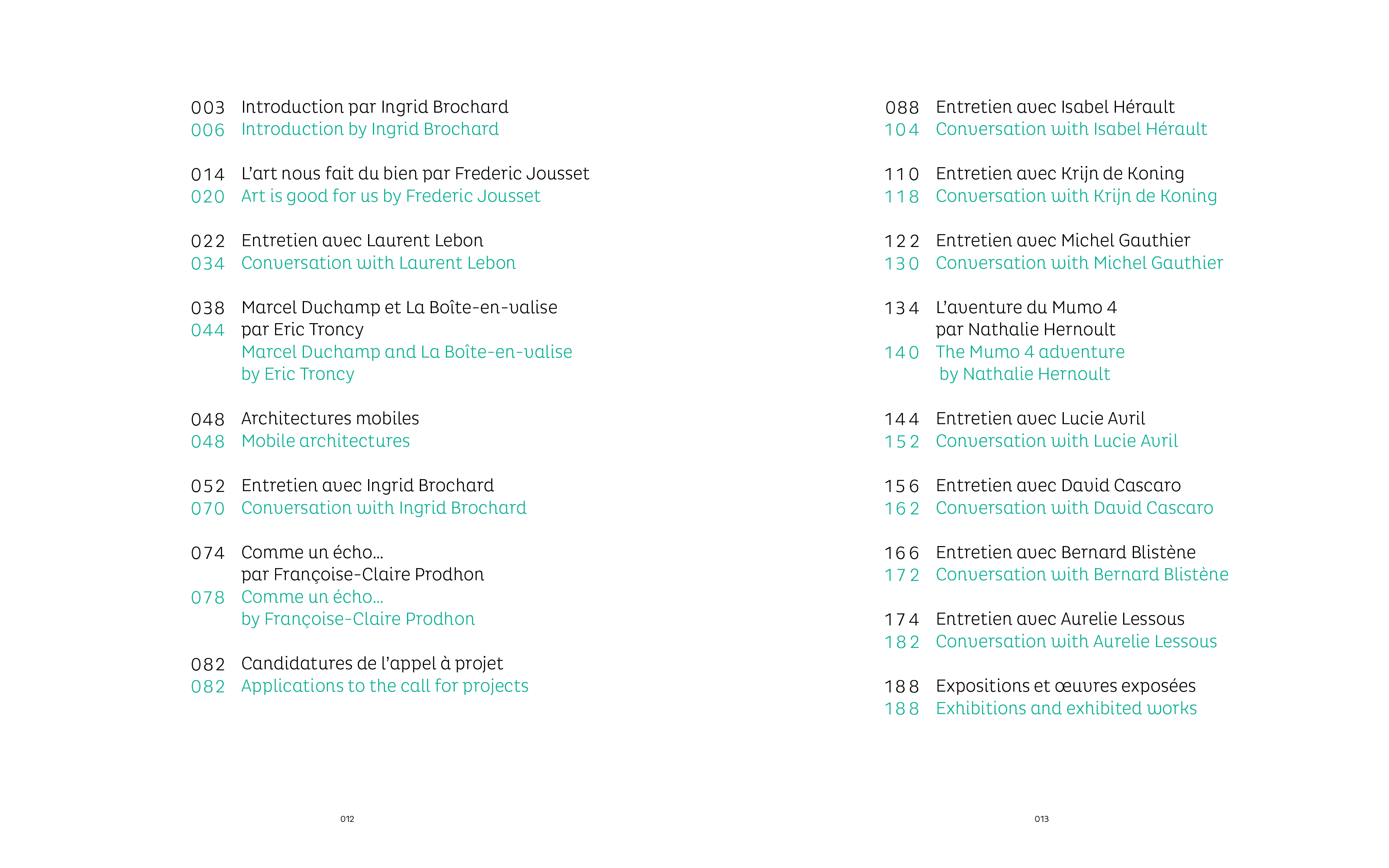 Contributions by Ingrid Brochard, Frederic Jousset, Laurent Lebon, Éric Troncy, Françoise-Claire Prodhon, Isabel Hérault, Krijn de Koning, Michel Gauthier, Nathalie Hernoult, Lucie Avril, David Cascaro, Bernard Blistène, Aurélie Lessous.