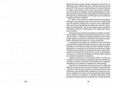 Since 1980, Gilles Perraudin (born 1949 in Bourgoin-Jallieu, France) has been developing a project strategy in his architectural work, first with Jourda & Perraudin and then with Perraudin Architectes, based on an understanding of and respect for the environment, which stems from his reflections on materials and energy management. He has long been interested in approaches that offer alternatives to a modernist architecture based on industrial and consumerist logics.