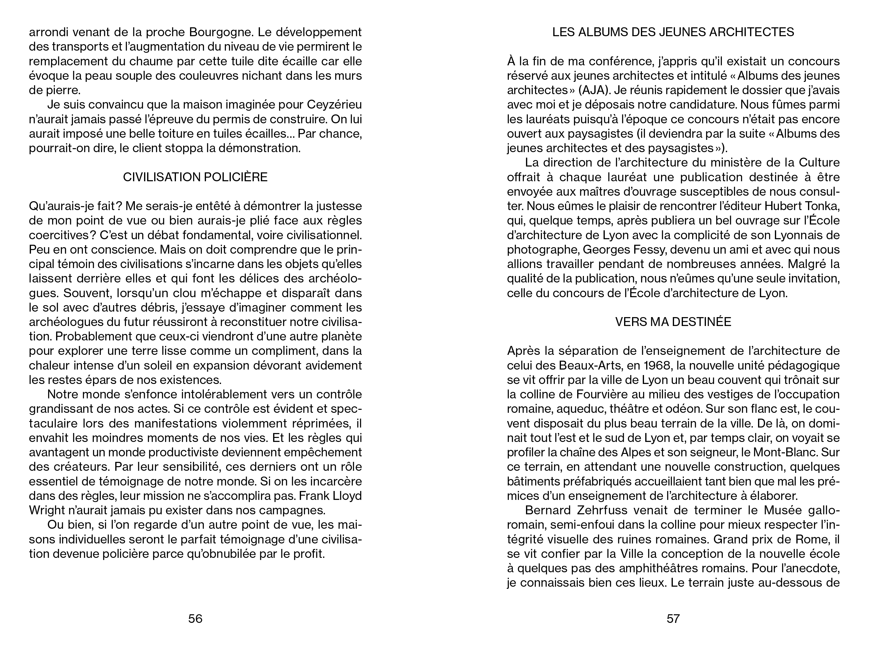 Gilles Perraudin's Les jours sont ronds is the new book in the "Essais" collection. The author invites us to follow him as he tells the story of his life as an architect. This re-reading of his career seeks to show, from the awakening of an architect to his full maturity, the path of his thought, perpetually moving, perpetually researching and questioning.