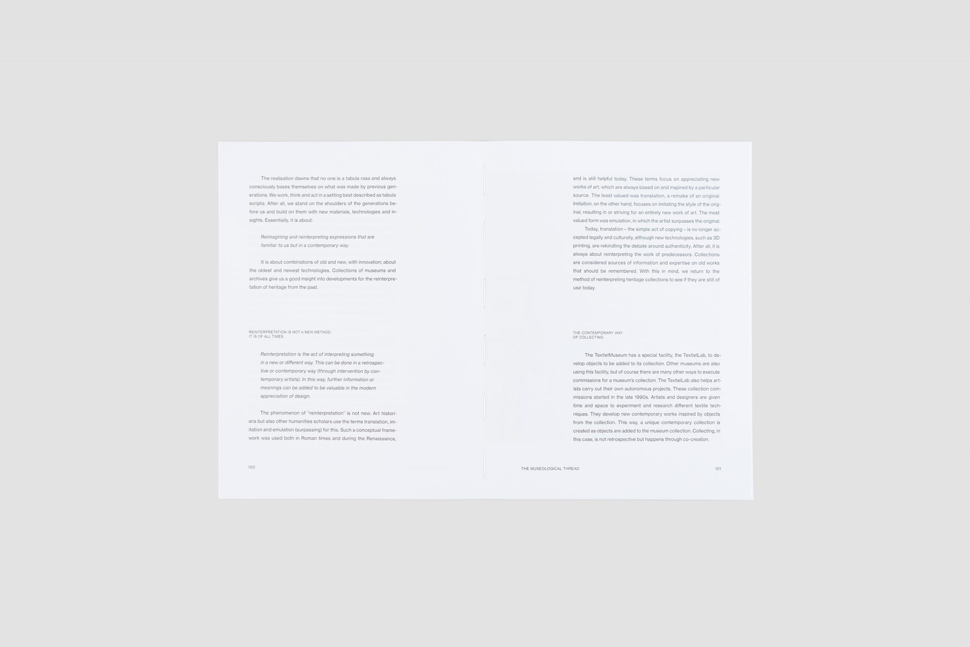 The book's uniqueness lies in its multi-aspect treatment of the medium of textile, regarded from the perspectives of art, history, anthropology, technology, politics, post-colonialism, museology, curatorship, and fashion, as well as from personal points of view taking shape amidst questions on identity, tradition, craft, collaboration and kinships with architecture, design, and industry. Individual themes are examined in relation to the issue of textile being a tangible medium of memory and a unique language which, by virtue of its nature, interweaves a variety of different themes.