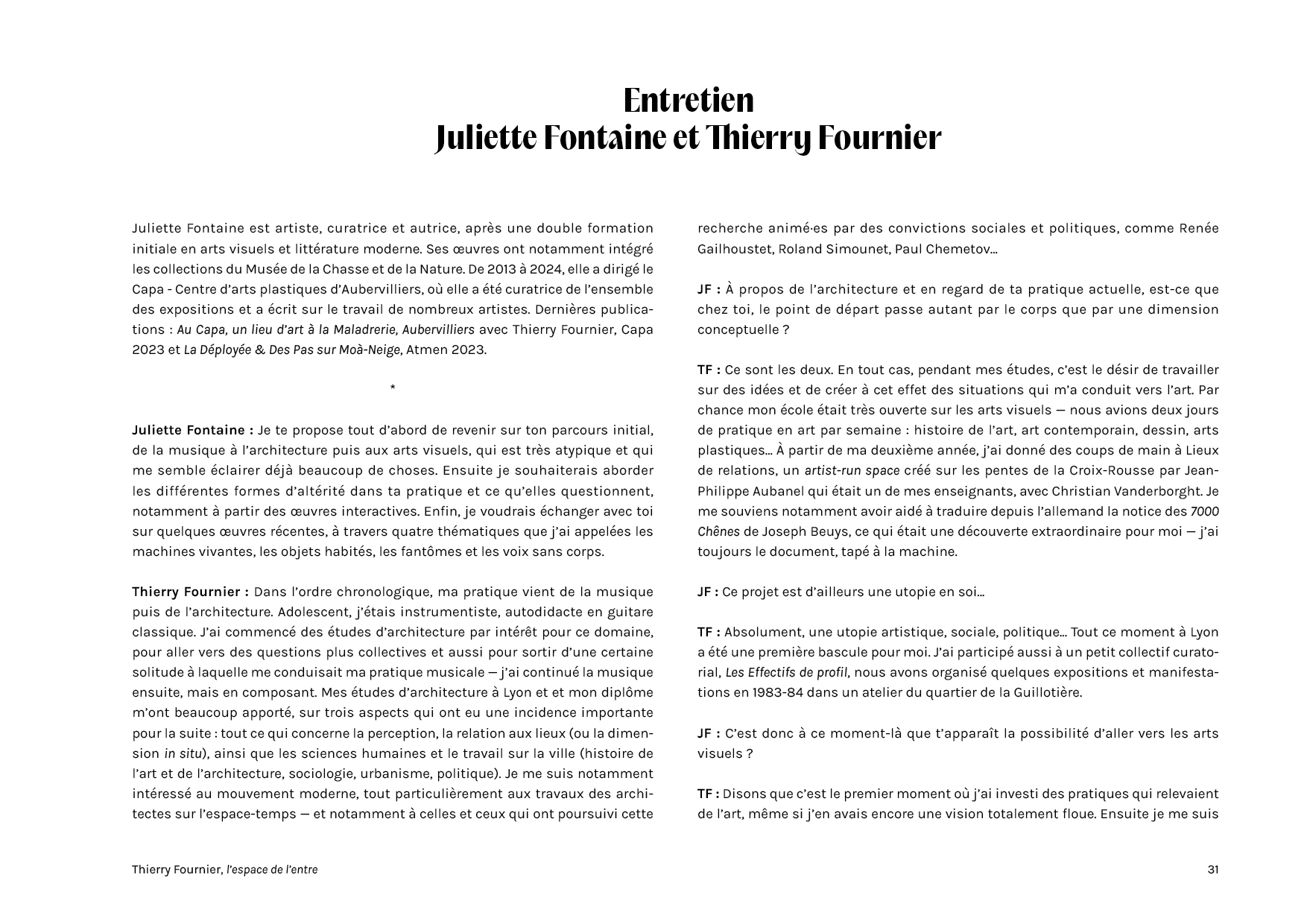 L'Espace de l'entre [which could be translated as "The Space in Between"] is a monograph as well as a reflection and dialogue between the artist and a number of interlocutors on his practice and a selection of 21 works created between 2008 and 2024, approached through four themes: