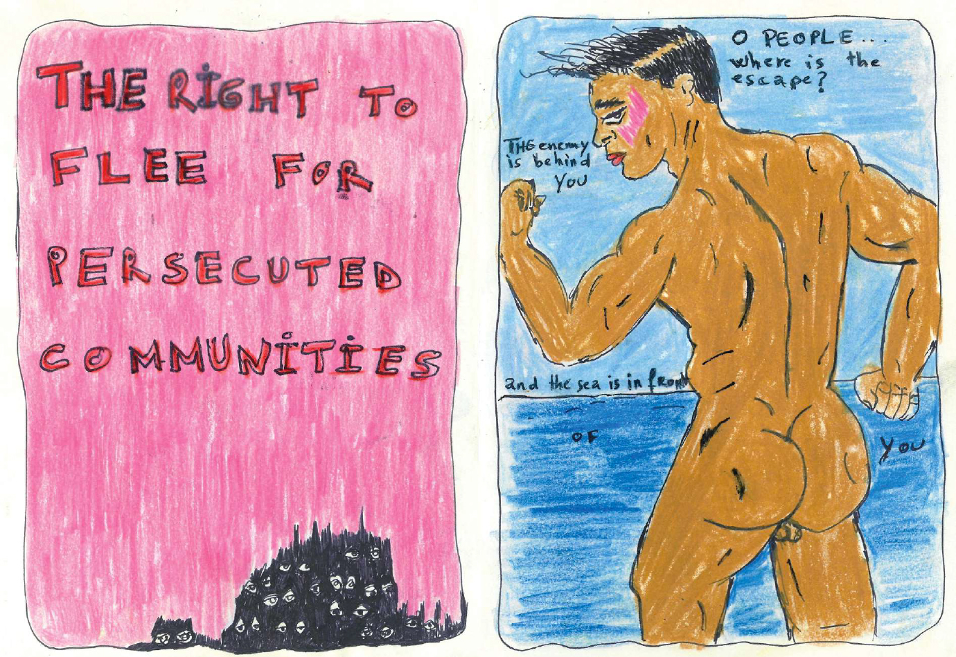 Soufiane Ababri (b. 1985, Rabat) is a Moroccan artist based in France. His protean work (drawings, installations, performances) explores questions of gender, homosexuality, racism and colonialism.