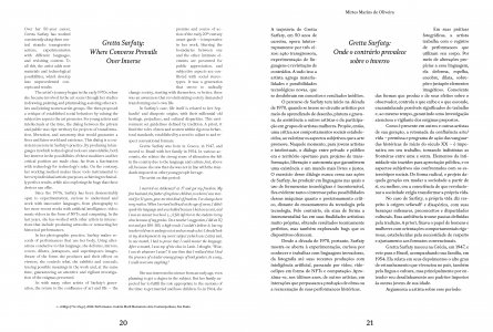 This book is dedicated to a pioneering name in contemporary Brazilian art: Gretta Sarfaty. From the 1970s onwards, her work has challenged the status quo by questioning the supposedly natural character of women's subordination through a less obvious discussion surrounding the individual and the female collective body.