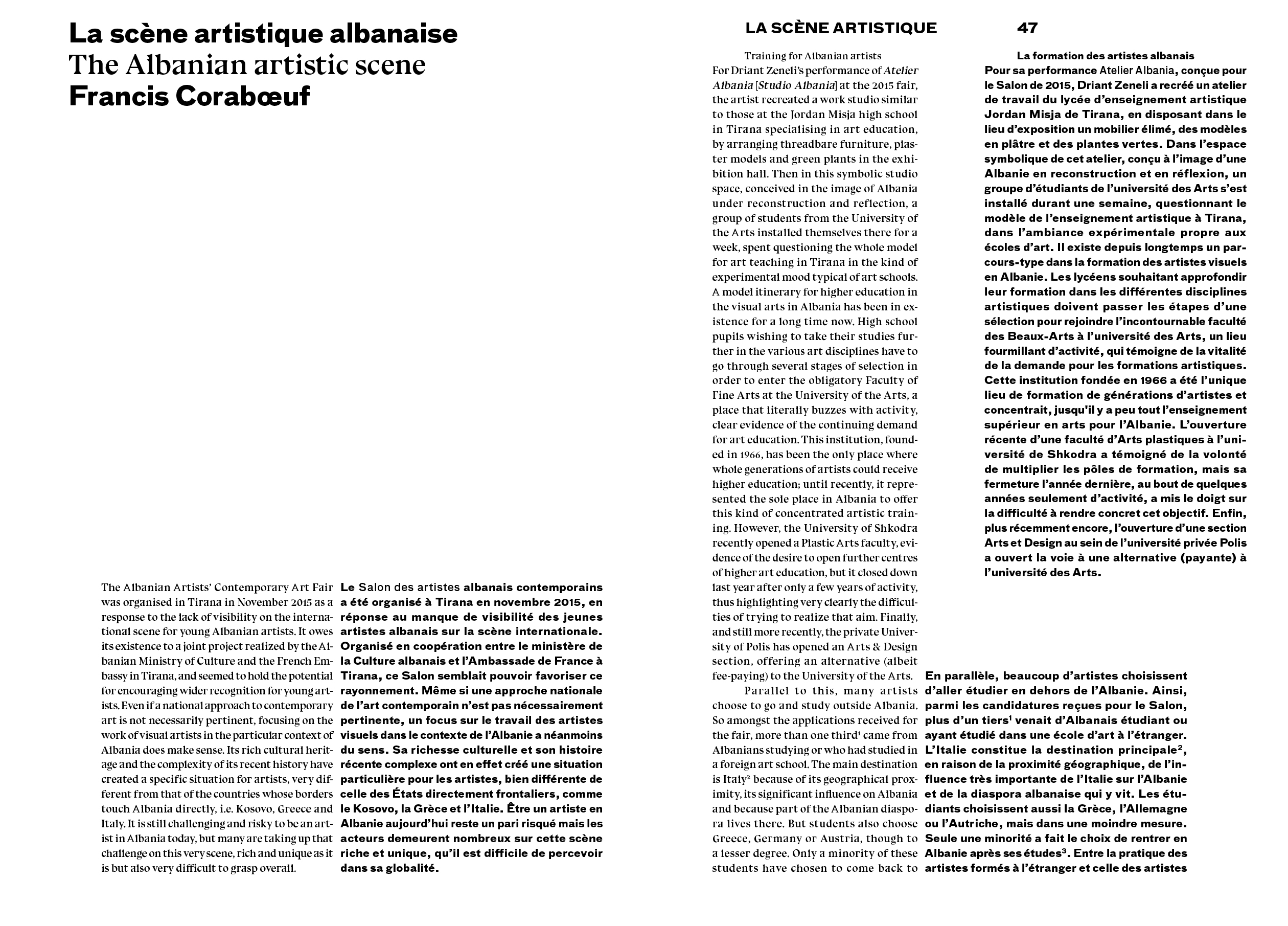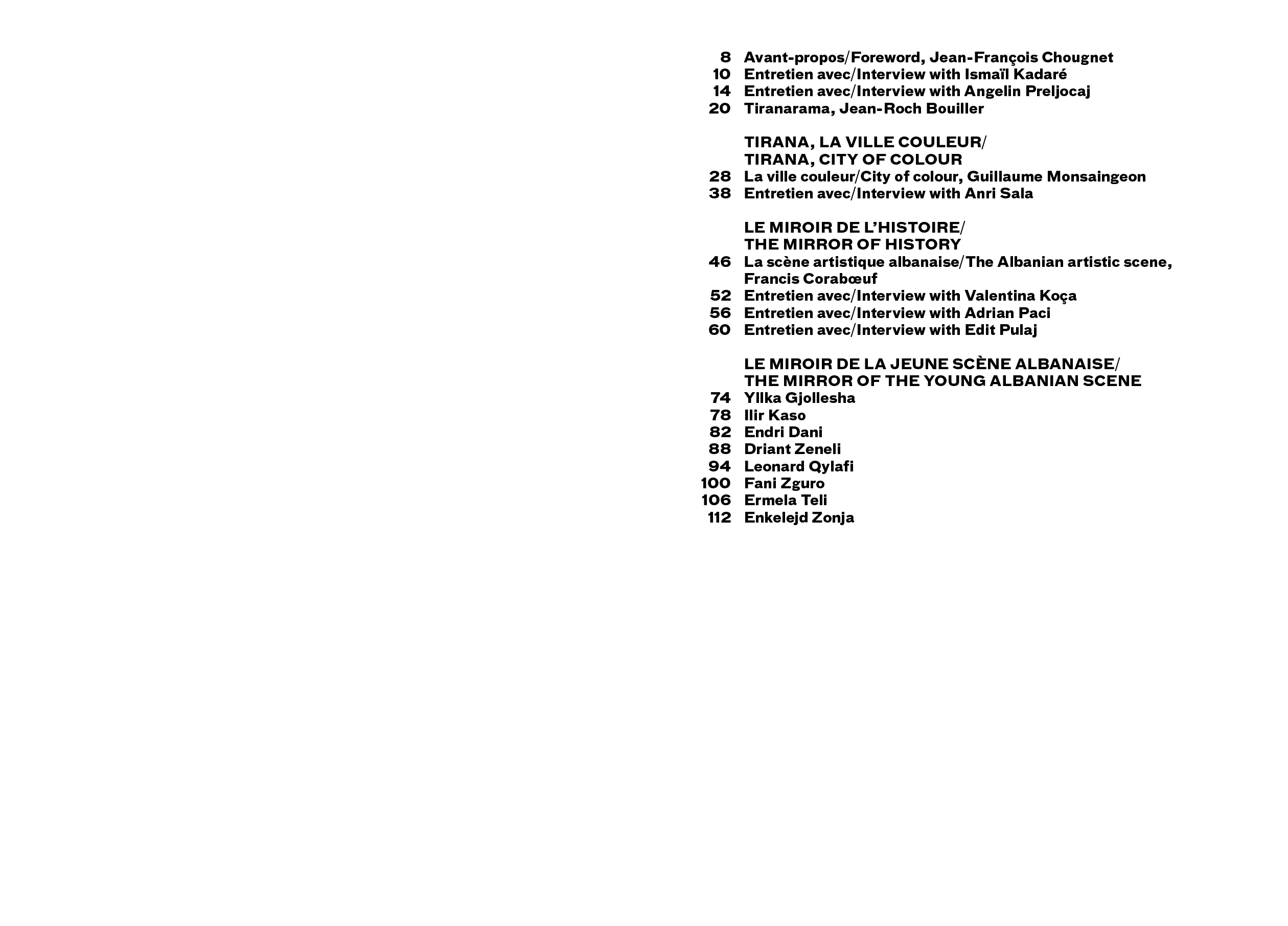 Contributions by Jean-Roch Bouiller, Francis Coraboeuf, Ismaël Kadaré, Valentina Koça, Guillaume Monsaingeon, Adrian Paci, Angelin Preljocaj, Edit Pulaj, Anri Sala.