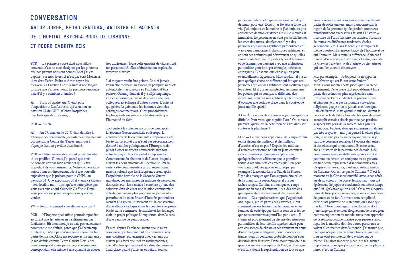 Contributions by Artur Jorge, Pedro Ventura, Pedro Cabrita Reis, Jean François Chougnet.