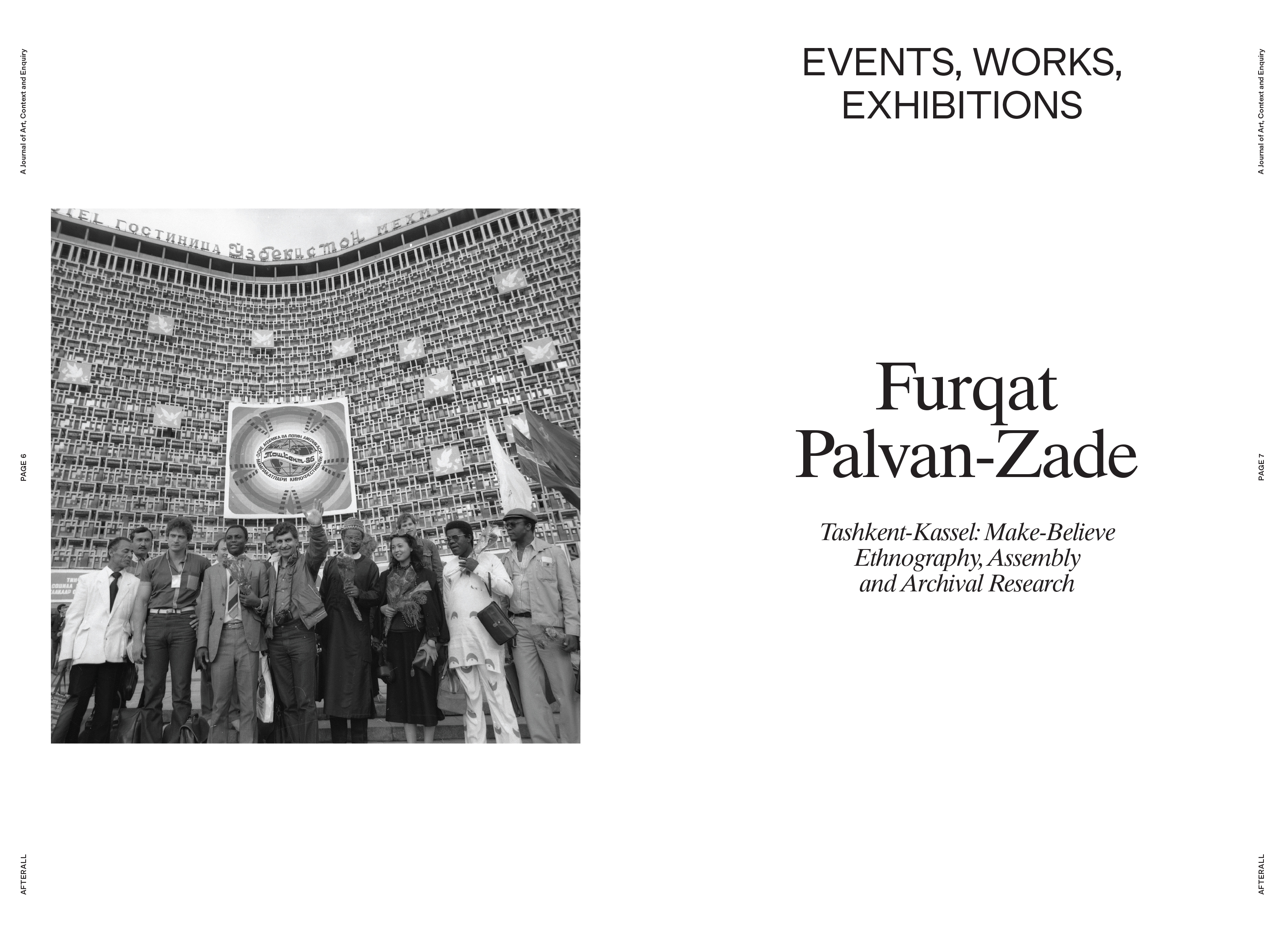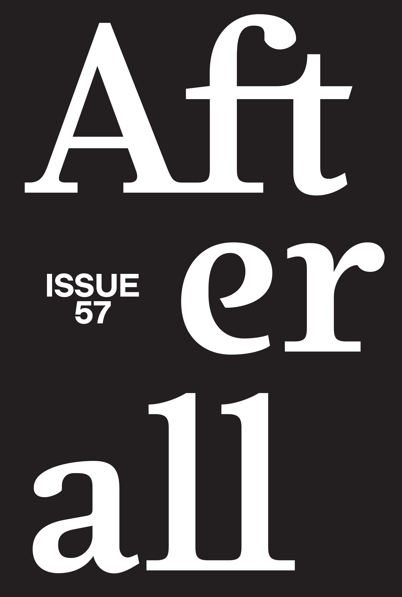 Afterall is published by Central Saint Martins in research and publishing partnership with M HKA, Antwerp; the John H. Daniels Faculty of Architecture, Landscape and Design, University of Toronto; NTU Centre for Contemporary Art Singapore; and in association with The University of Chicago Press.
