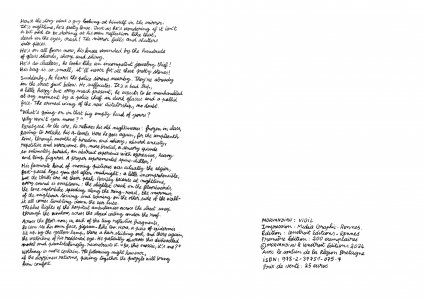 Morvandiau, better known as a comic strip author and press cartoonist, has taken advantage of countless nocturnal drawing sessions to unwittingly create an artist's book in which painting, drawing and the meaning of life come together page after page.