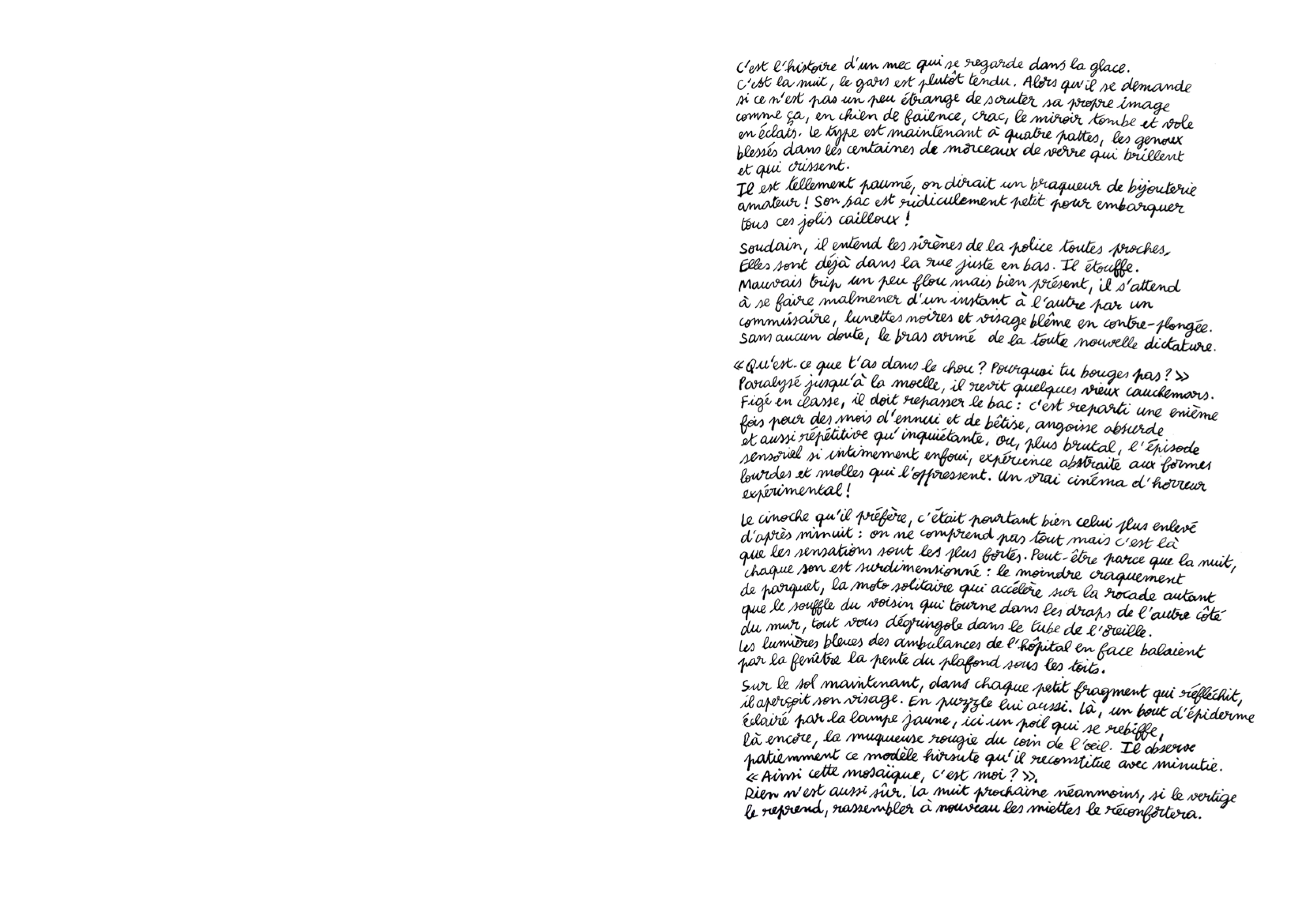 Mostly in the form of self-portraits, this artist's book is a pictorial quest that looks straight at the question of creation and its torments.