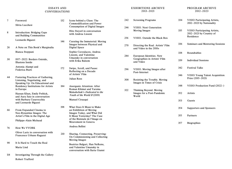 Maria Lind, Andrea Lissoni, Philippe-Alain Michaud, Han Nefkens, Emily Pethick, Julian Ross, Aura Satz,