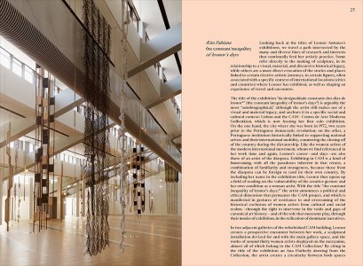 This publication documents artist Leonor Antunes's installation at Lisbon's CAM – Centro de Arte Moderna Gulbenkian.