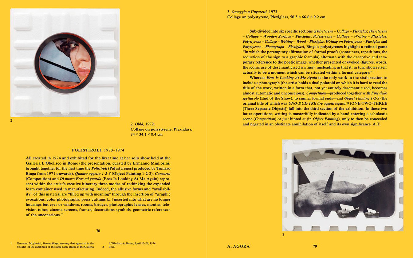 This monograph explores the work and the artistic activities of Italian radical performer, poet, visual artist and feminist Tomaso Binga through a specific lexicon (Agora, Biographies, the Corporeal Nature of the Word, Correspondences, Geographies, Vaginal Value), and also features a selection of poems by the artist.