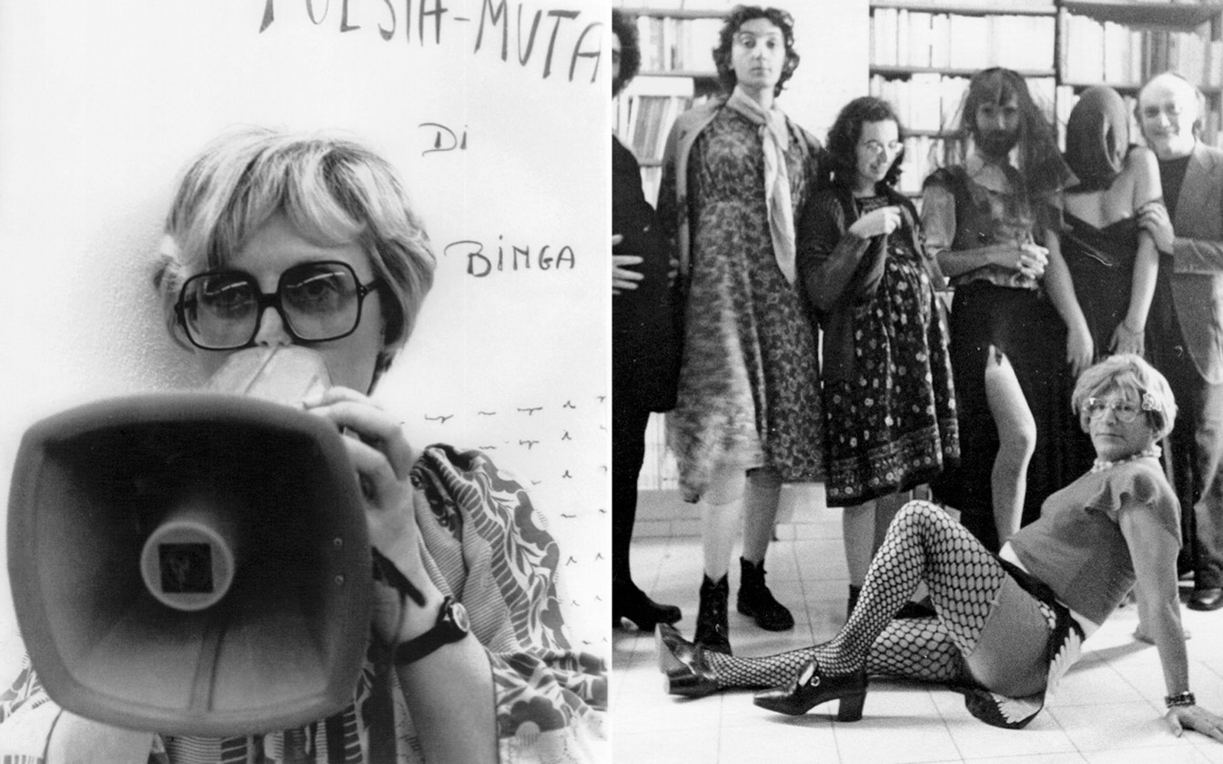 Embedded in the language of visual and sound poetry, the practice of Tomaso Binga (Bianca Pucciarelli Menna, born 1931 in Salerno) is based on an ironic, insightful questioning of the idea of gender. In her work, this theme is not only a generator of identity, but also a way of looking afresh at the social roles, rights and opportunities traditionally available to women. Her decision to work under a male pseudonym from 1971 onwards was intended to parody male privilege and to provoke a barbed reflection on the political dimension of what it is to be a woman. Her attitude has served as a key marker within the gender equality issues at the center of the debate raging amongst the younger generations.