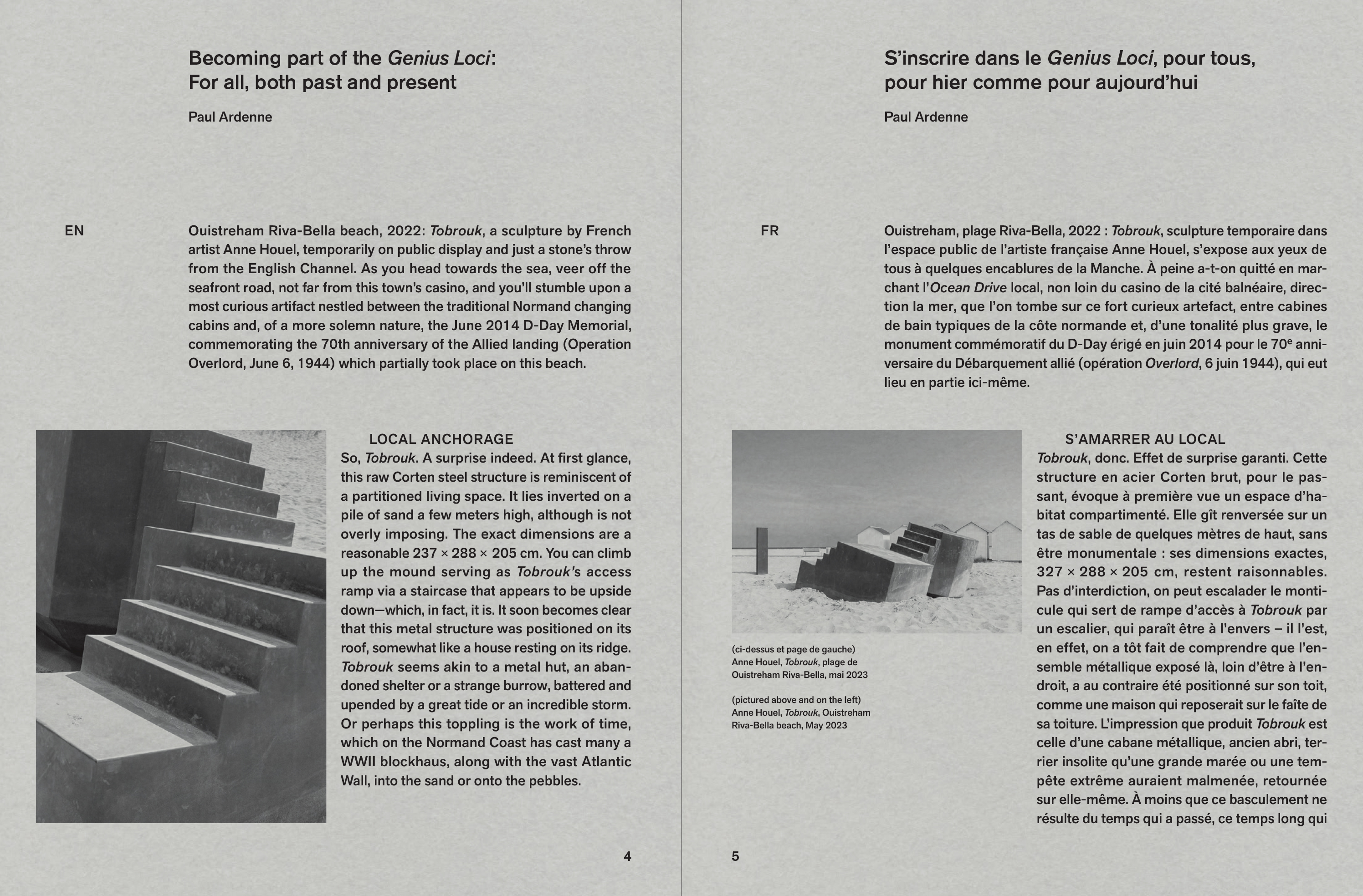 Anne Houel's first book is dedicated to the monumental sculpture Tobrouk, installed on Ouistreham's Riva-Bella beach for one year in 2023, then moved to the Musée d'Art, Histoire et Archéologie in Évreux.