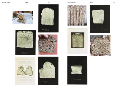 An edition like an archaeology of our more or less contemporary iconography of bread. A lacunary and subjective encyclopedia that reflects its presence in our lives and its political, social, economic, and aesthetic evolutions (artist's book).