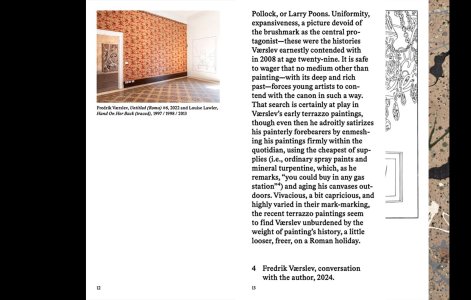 Fredrik Værslev (born 1979 in Moss, Norway, lives and works in Drøbak, Norway) studied at the Staatliche Hochschule für Bildende Künste in Frankfurt and at the Malmö Art Academy, Sweden. He is the director and founder of the Landings Project Space in Vestfossen, Norway. He exhibited in numerous museums and institutions worldwide.