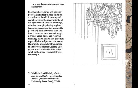 Seen together, works by Lawler and Værslev point beyond their own limits, drawing our eyes to their surrounding spaces, asking how an artwork's context can frame its meaning and vice versa.