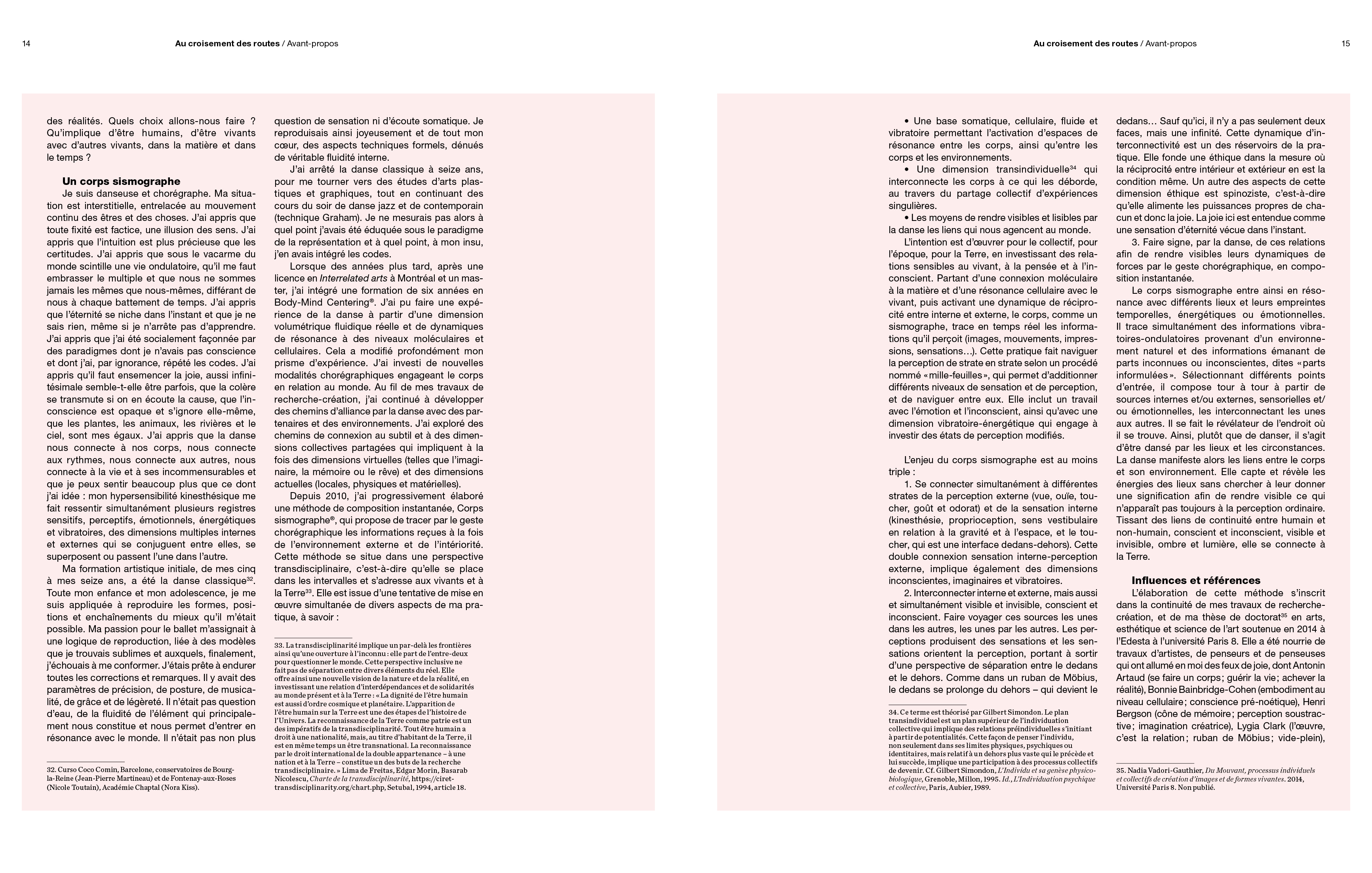 Nadia Vadori-Gauthier is a French-Canadian choreographer based in Paris, with a PhD in arts, aesthetics and art sciences, and is a Body-Mind Centering® teacher.