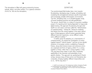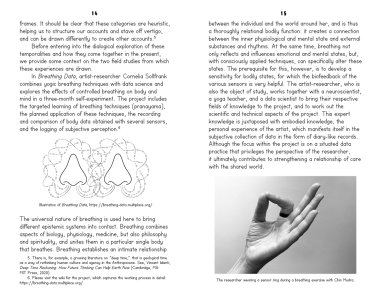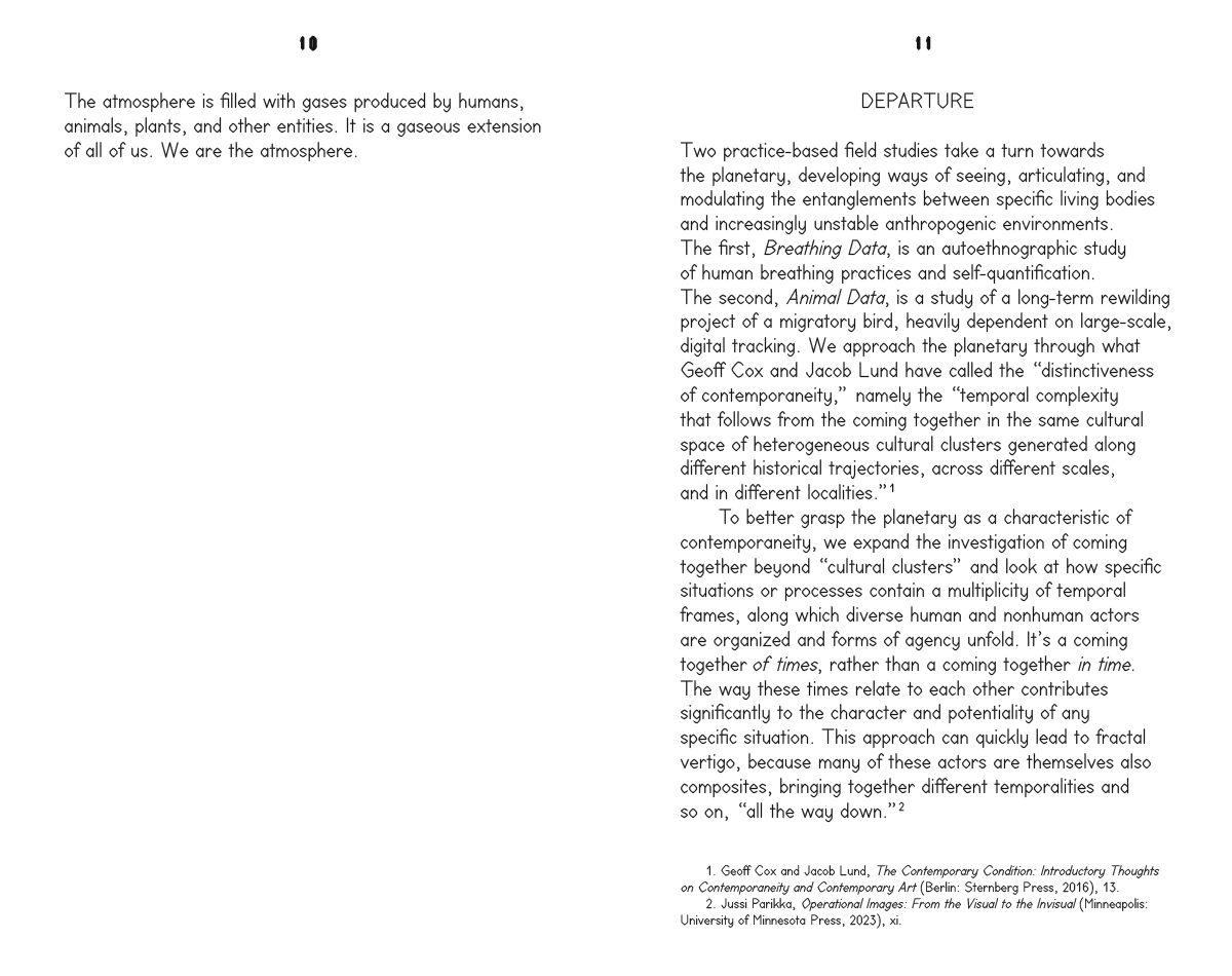 In Contemporaneity in Embodied Data Practices, two artistic field studies provide the starting point for a dialogical reflection on the entanglement of diverse temporalities in body-related, datafied, and experiential practices. Shifting through lived, historical, evolutionary, and technological rhythms, Cornelia Sollfrank and Felix Stalder unfold their respective more-than-human frames of reference, and arrive at specific forms of agency in the contemporary moment.