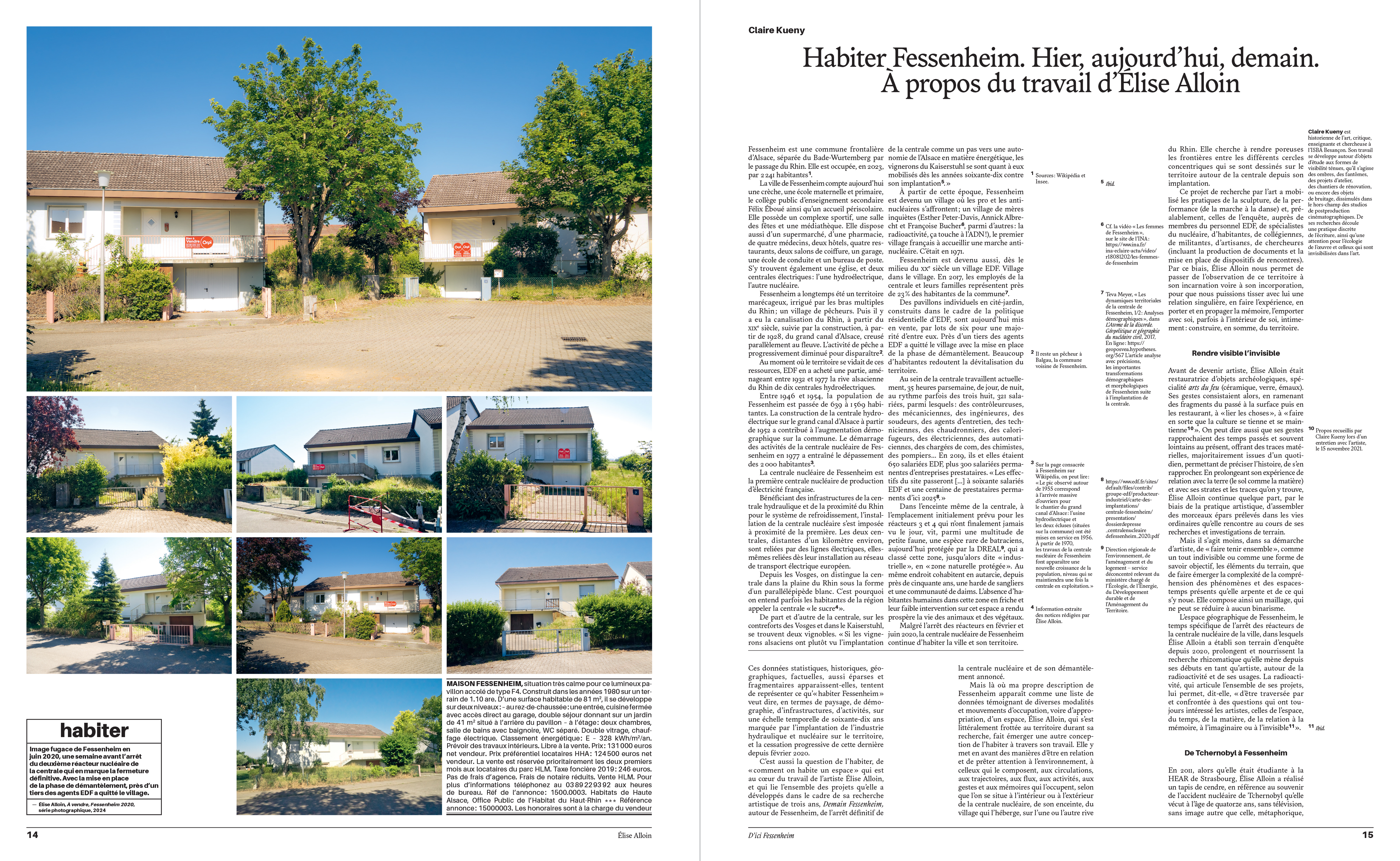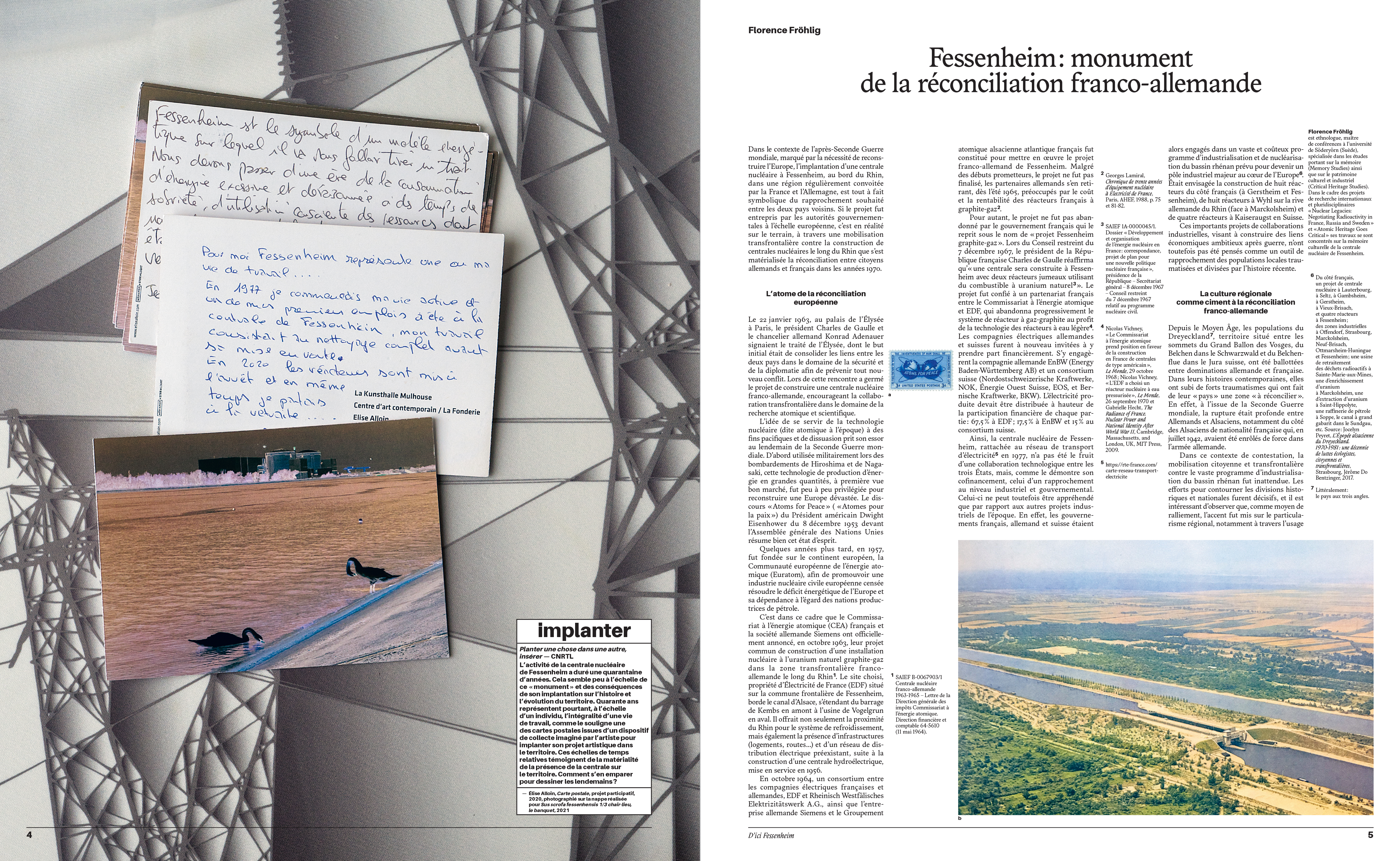 D'ici Fessenheim replicates and extends Élise Alloin's artistic research in the Fessenheim area, following the shutdown in 2020 of France's oldest nuclear power plant and the first in a series of dismantling operations to come.