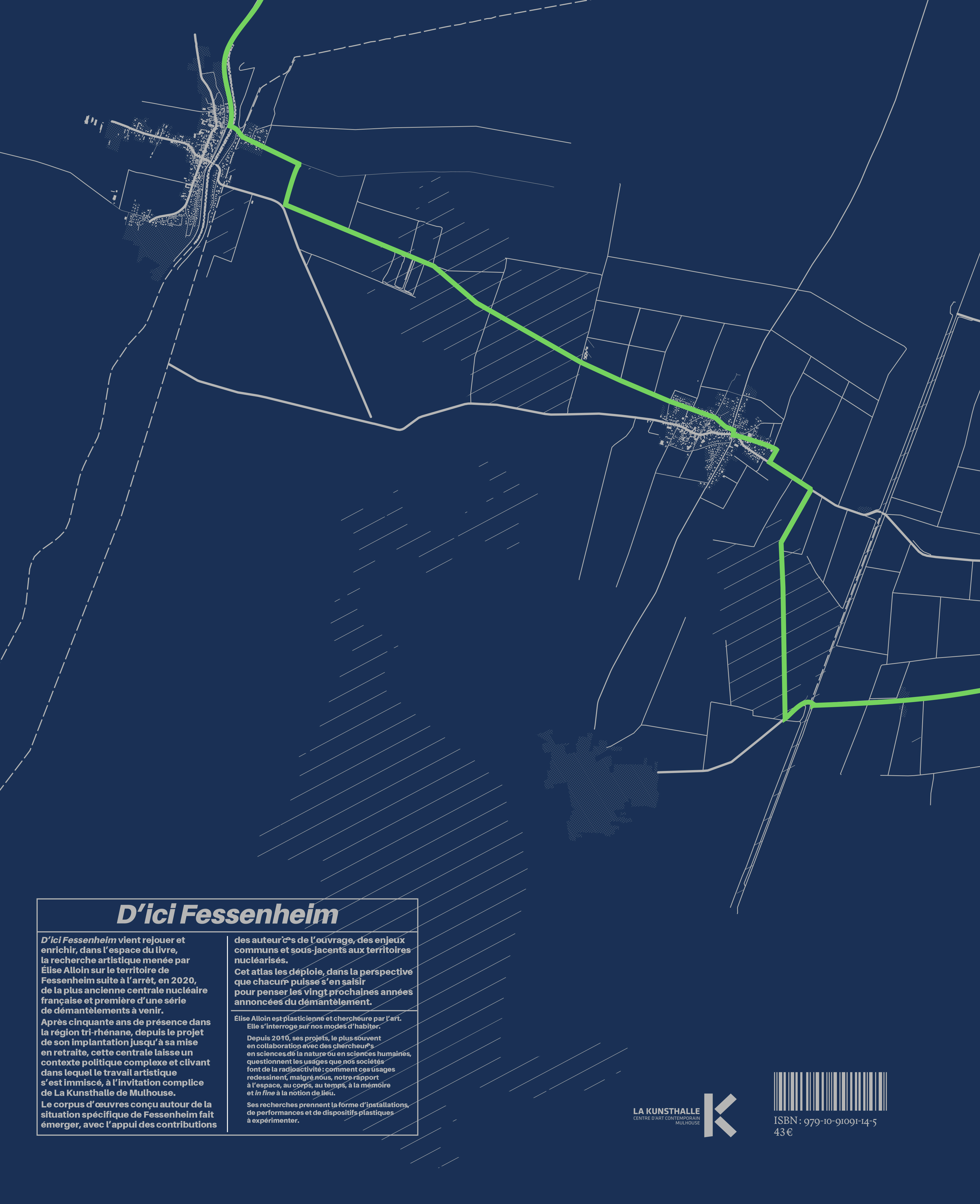 After seven years of operation and forty-three years of electricity production—the equivalent of a professional lifetime—the plant's retirement leaves a complex and divisive political context into which the artistic work has stepped, at the complicit invitation of La Kunsthalle Mulhouse. The body of work designed around the specific situation of Fessenheim, and the contributions of the book's authors, highlight the issues of nuclearized territories. This atlas redeploys these issues, helping us all to think about the next twenty years of dismantling.