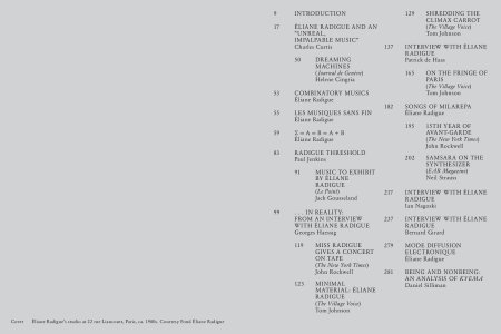 Texts by Éliane Radigue, Charles Curtis, Georges Haessig, Patrick de Haas, Ian Nagoski, Bernard Girard, Dagmar Schwerk, Daniel Sillman, Madison Greenstone, Anthony Vine.