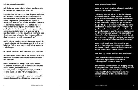 Ionuț Cioană (1980–2020) worked under the pseudonym Mircea Nicolae, a figure who made a lasting impact on the Romanian cultural scene. His profile as an artist-intellectual was marked by a continuous process of self-reflection and self-positioning within the artistic system.