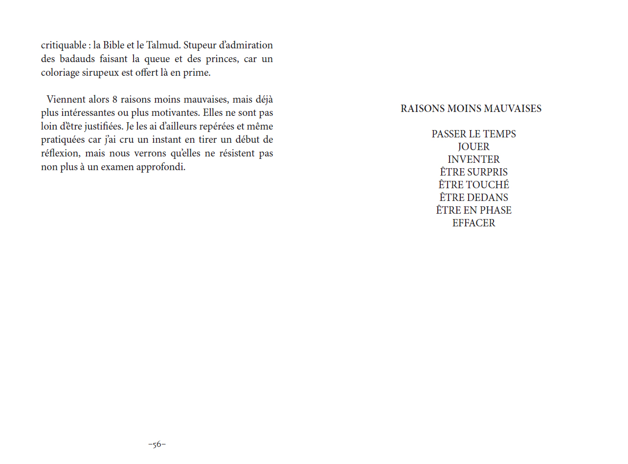 Without ever giving a lesson in painting, Alain Gunst lists 32 reasons for painting that, “bad” or “not so bad”, take malicious pleasure in mocking an art world.