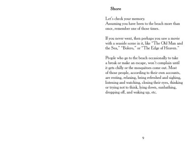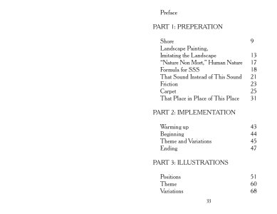 This publication is an adaptation of Cevdet Erek's artist book SSS – Shore Scene Soundtrack, Theme and Variations for Carpet, originally published in Istanbul in 2007, by BAS (İstanbul Sanat Aras ̧tırmaları Dernegi), in the context of BENT, Artists' Books from Turkey, edited by Banu Cennetoğlu and Philippine Hoegen.