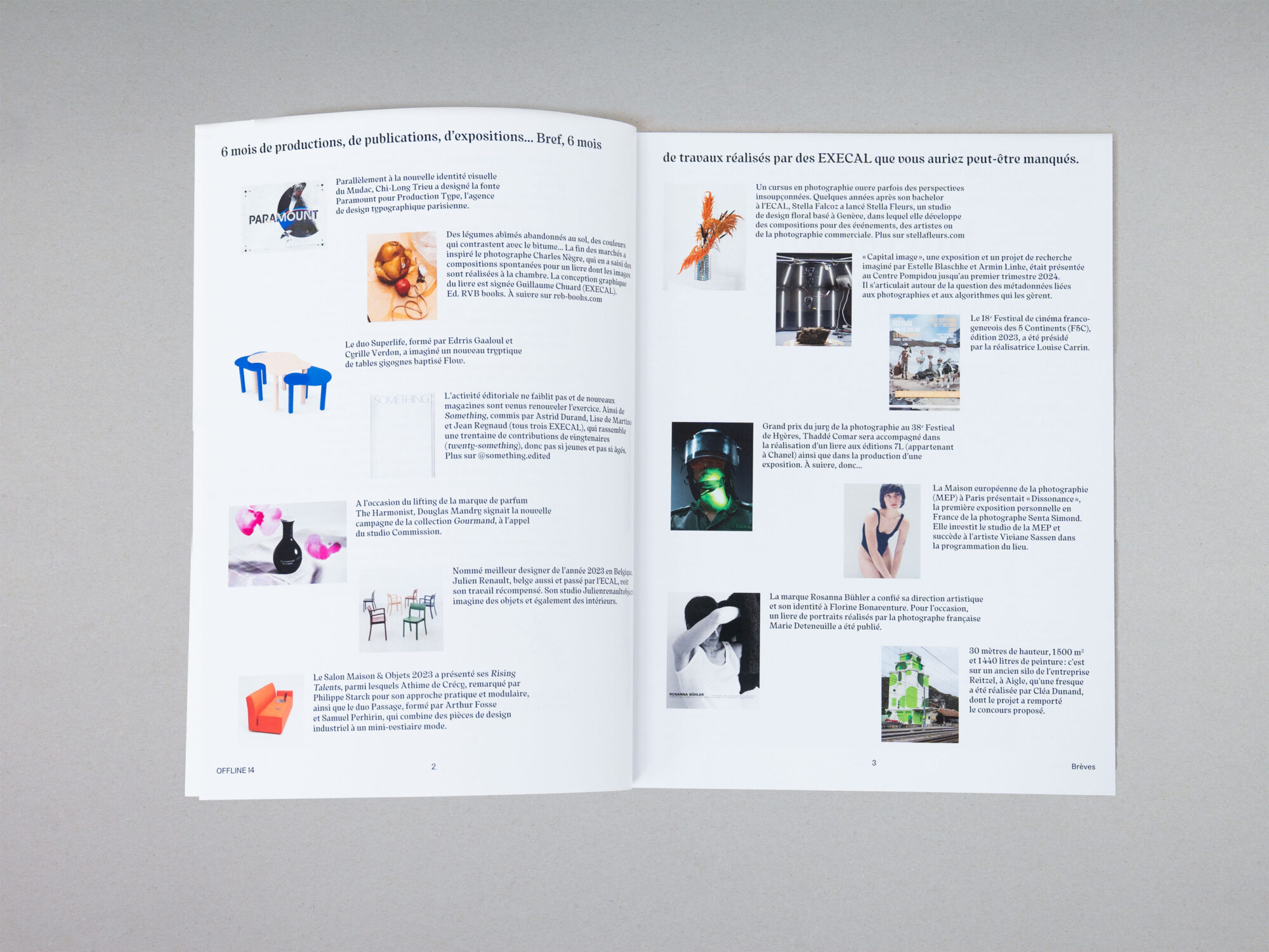 Contributions by Karim Akel, Ettore Bruni, Hector Codazzi, Albane Durand-Viel, Marc Facchinetti, Lisa Grobet, Flora Hayoz, Lester Kielstein, Fredrick Maag, Barnabé Masson, Yves Möhrle, Lidia Molina Gonzalez, Luca Reichenbach, Natasha Saccardi, Cyprien Valenza, Alfredo Venti, Noé Vercaemst, Cedric Zellweger; portfolios by Ettore Bruni, Emanuele Delpozzo, Jasmine Deporta, Belinda Kiela, Jerome Luginbühl, Auriane Nicollier.