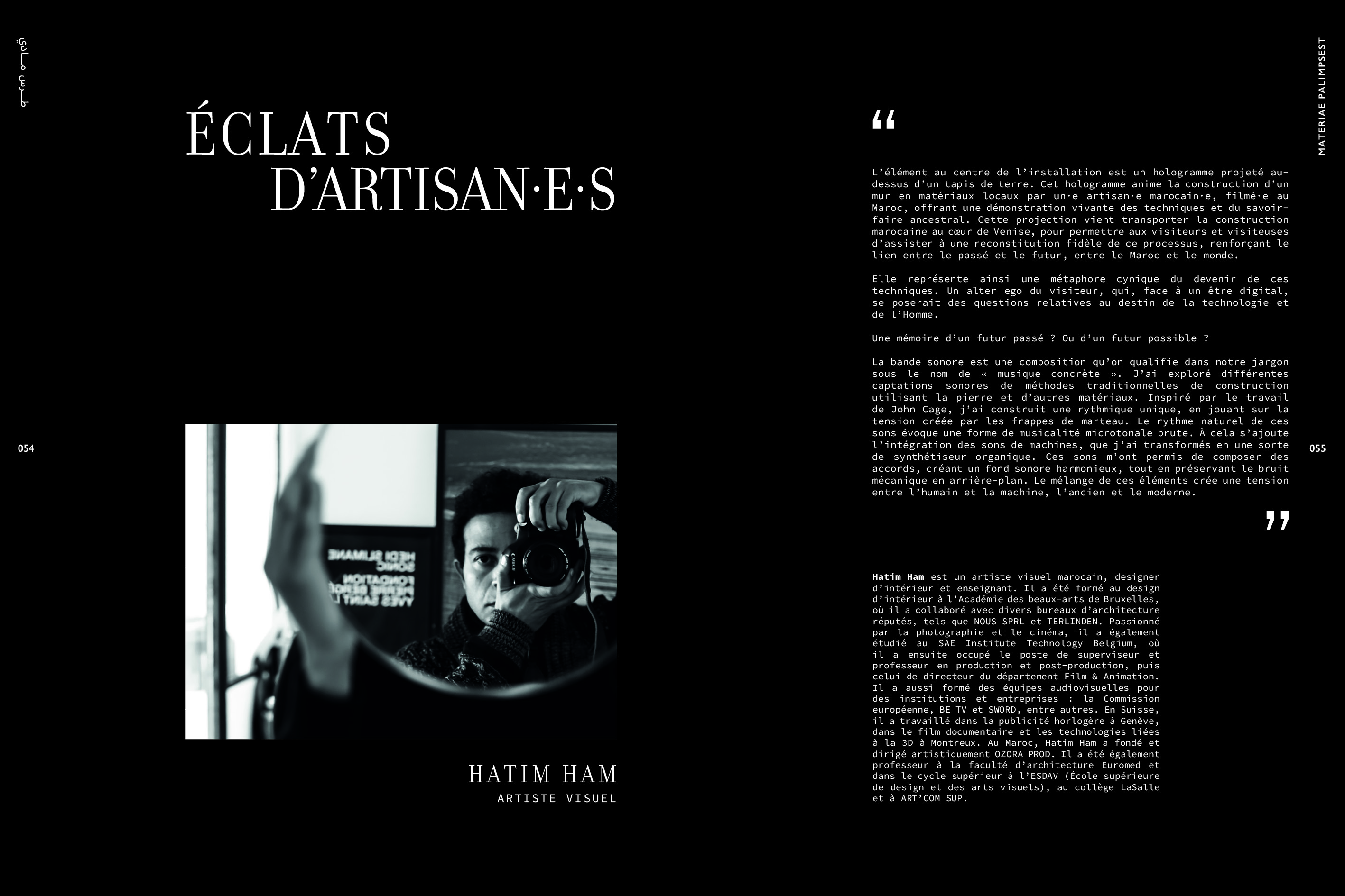 El Mehdi Belyasmine, Alia Bengana, Fatima Zahra Ben Hamza, Rabia Charef, Khalil Morad El Ghilali, Philippe Garnier, Hatim Ham, Rabiaa Harrak, Mouncif Ibnoussina, Soumiya Jalal, Elie Mouyal, Ronald Rael. Nadya Rouizem, Fayçal Tiaïba.