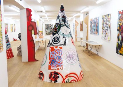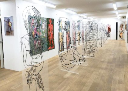Thierry Cauwet (born 1958 in Bourg-Saint-Maurice, France), painter and multimedia artist, defines himself as créole, shaped by the cultures of his successive residences (Paris, Rome, Martinique, Marseille, India, Réunion, and back to Paris). His work is prolific and multifaceted, employing numerous techniques: photography, video, film, painting, sculpture, installation, printmaking, stained glass, digital imagery, and more. The body—whether presented in reality or represented—is a constant in his practice, leading to a poetics of space conceived as parallel planes in time. His painting practice, initiated in 1986, establishes painterly repentance as a manifesto for the development of the artwork. This deconstruction of the painted image—through erasure and subtraction—has evolved into a system of pictorial functions that continues to expand, incorporating cutting, folding, and printing.