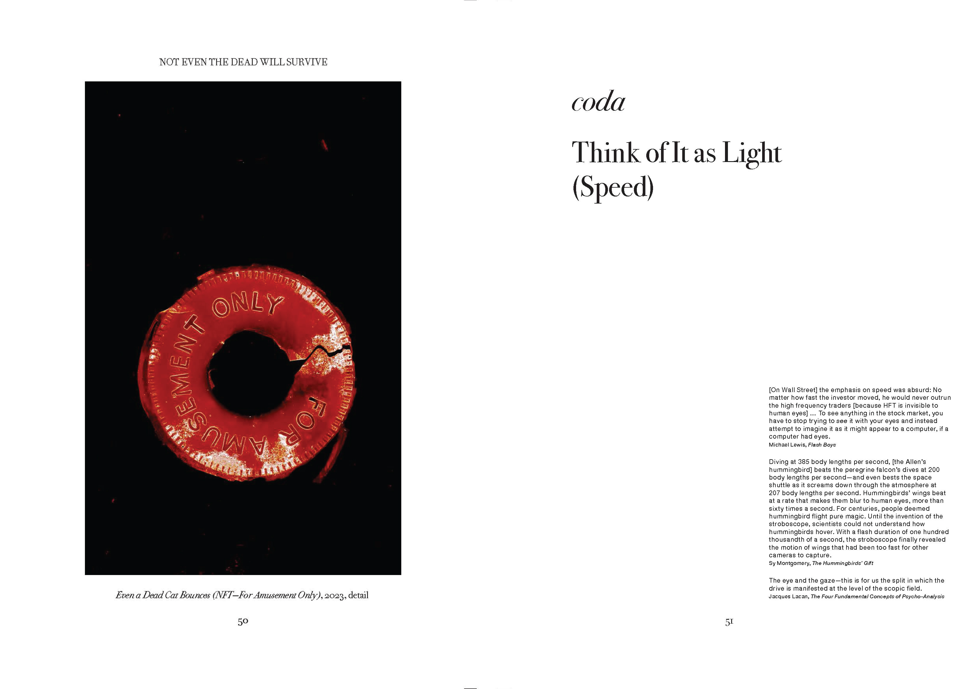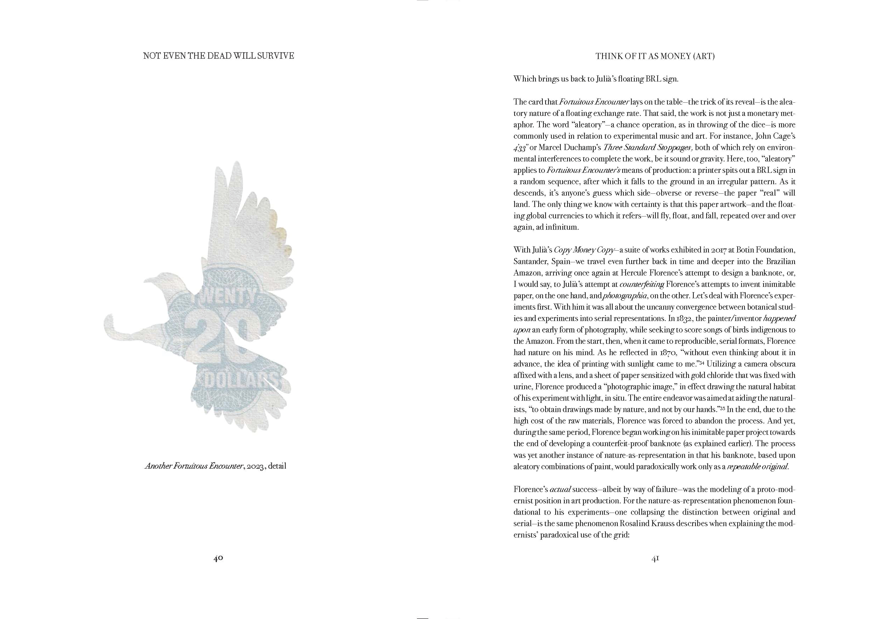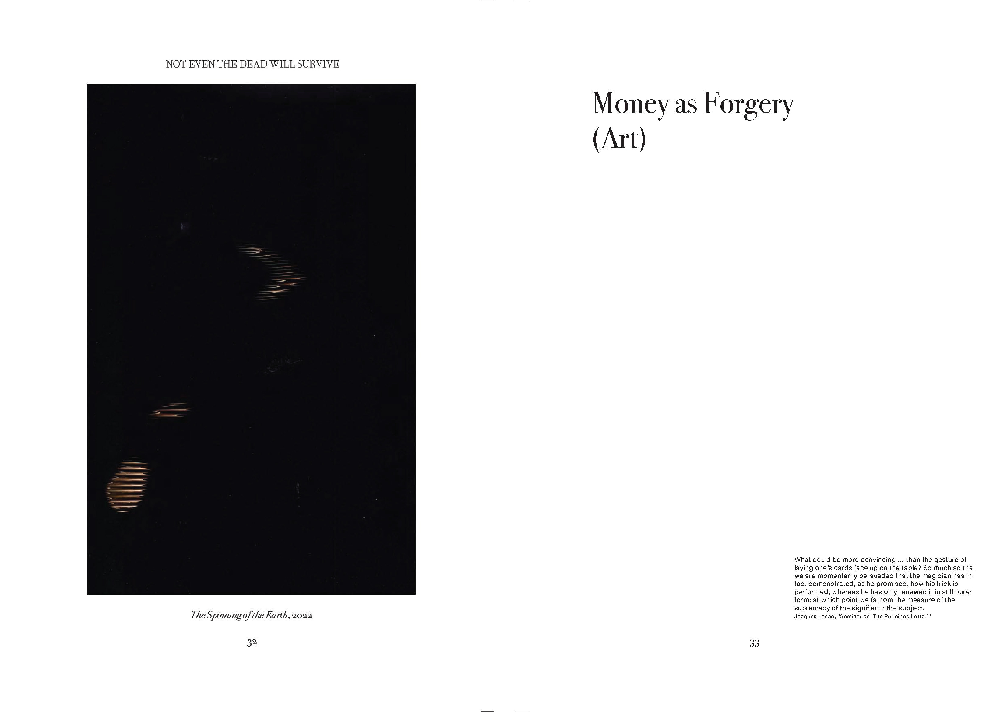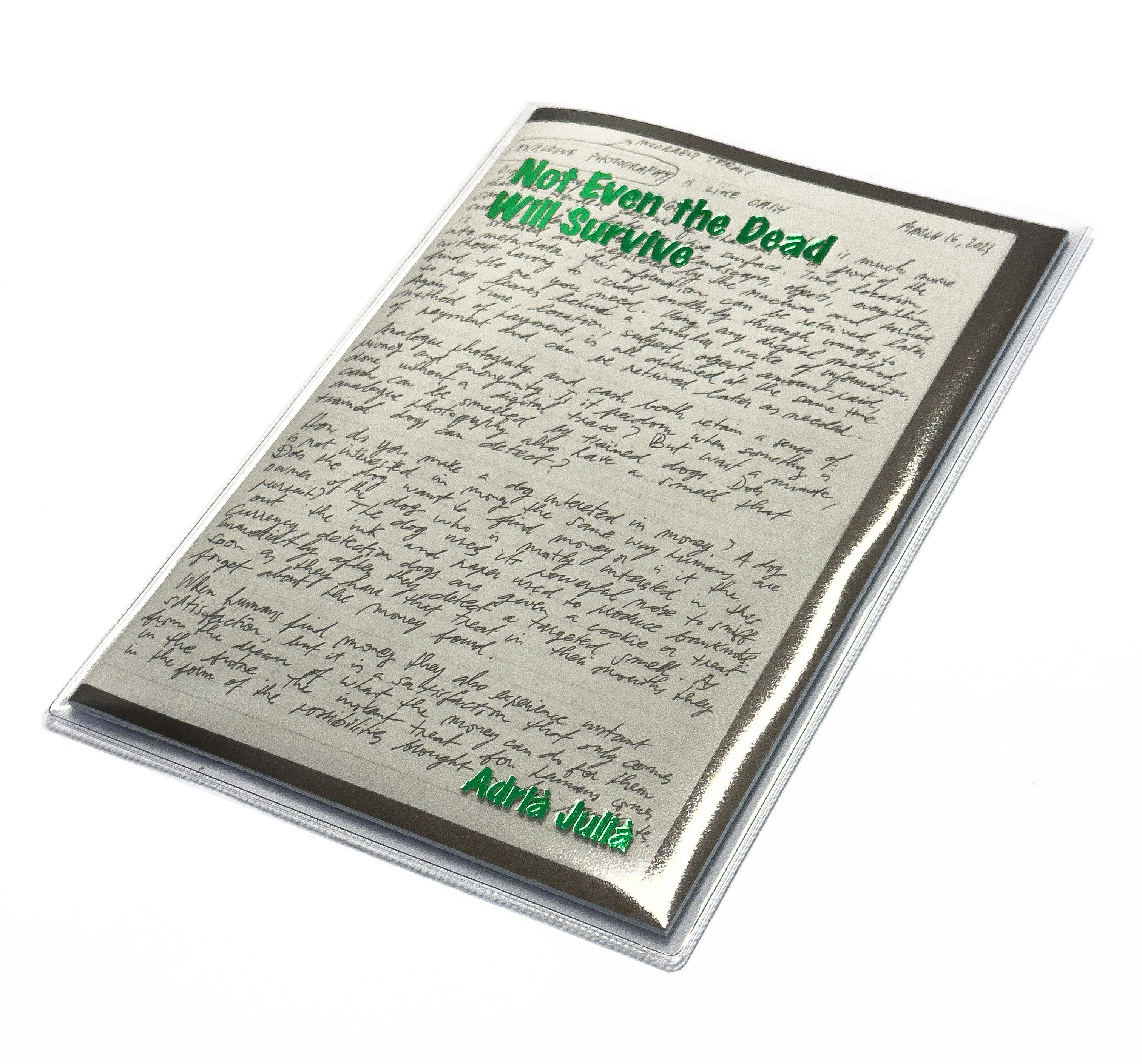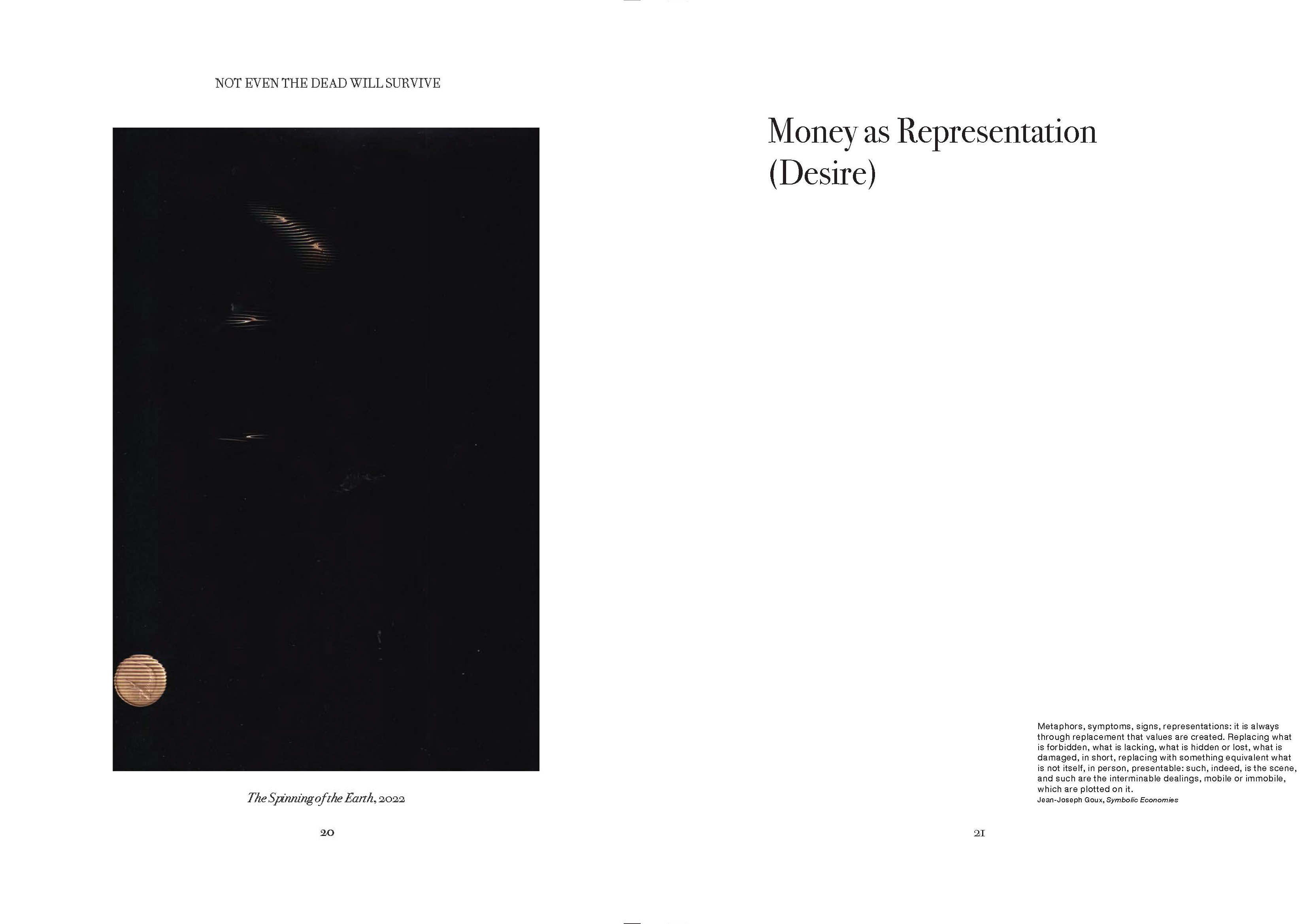 Adrià Julià: Not Even the Dead will Survive follows the meaning and production of currency in the context of photography. Adrià Julià's works—image, sculpture, and film—question the various modes of monetary representation.