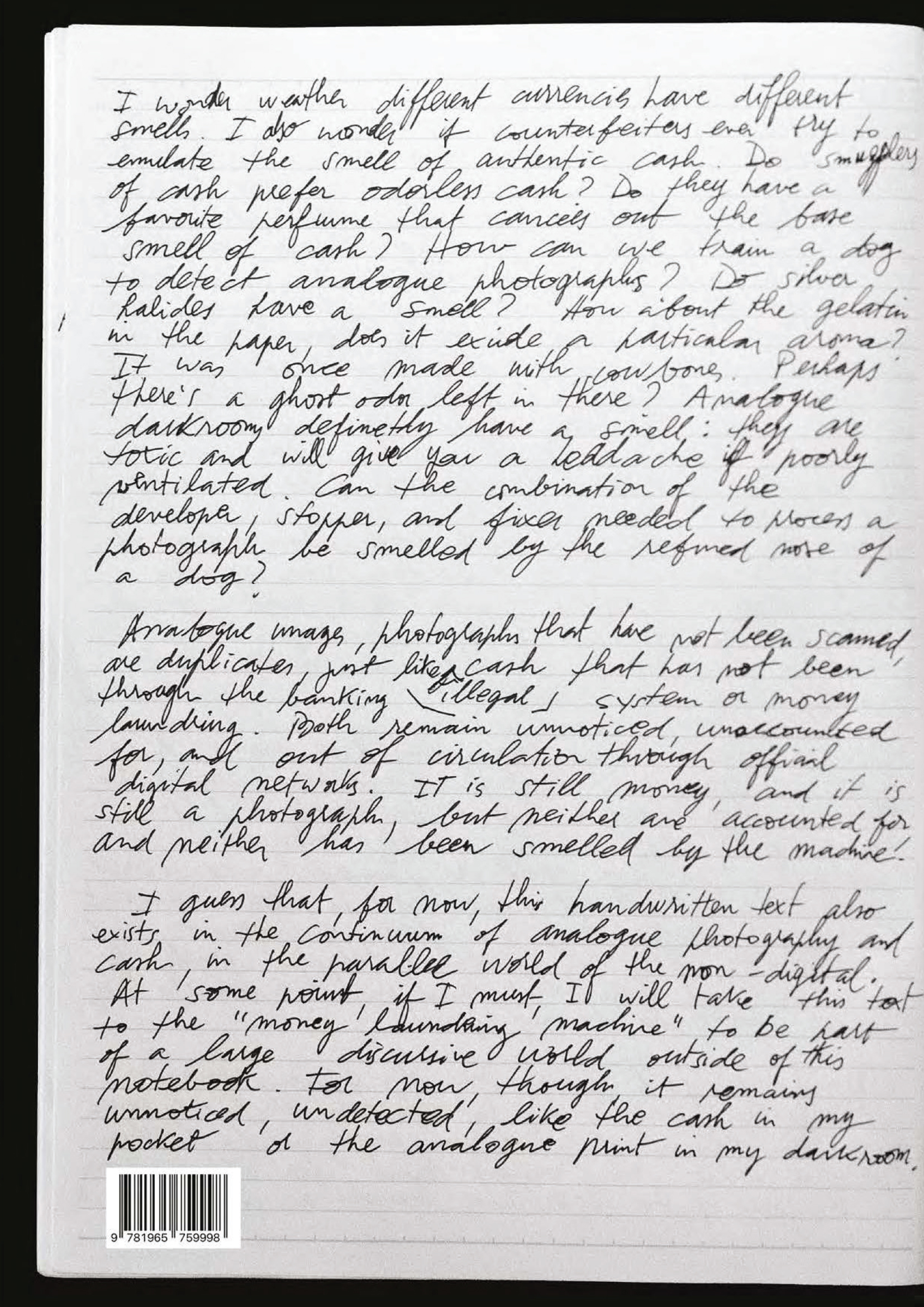 In addition to the artist's work, the book features a trenchant 10,000-word essay by professor and art historian Juli Carson. From Europe to South America and through the physicality of the bank note to the digitalization of the Visa card, the publication takes a philosophical and poetic look at its subject.