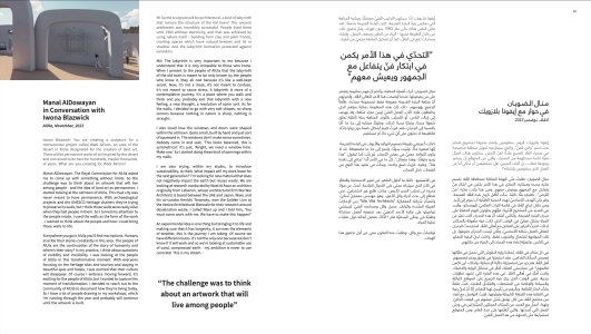 Manal AlDowayan is a multi-media artist whose works are often made with the participation of a host of collaborators.Together they reveal untold stories about places and people - in particular women. She is creating a major new installation for Wadi AlFann, or Valley of the Arts, inspired by the 900-year-old settlement of AlUla: a labyrinth of sculpted walls that retrace the footprint of the old town, appearing like a mirage in the desert.