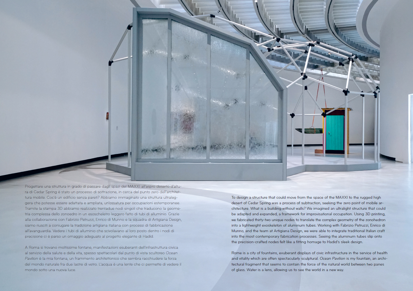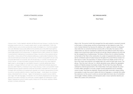 A project curated by American artist Oscar Tuazon, which explores water as a metaphor, as an element that resists any attempt at shaping, and as an essential medium for artists: a pure mirror.