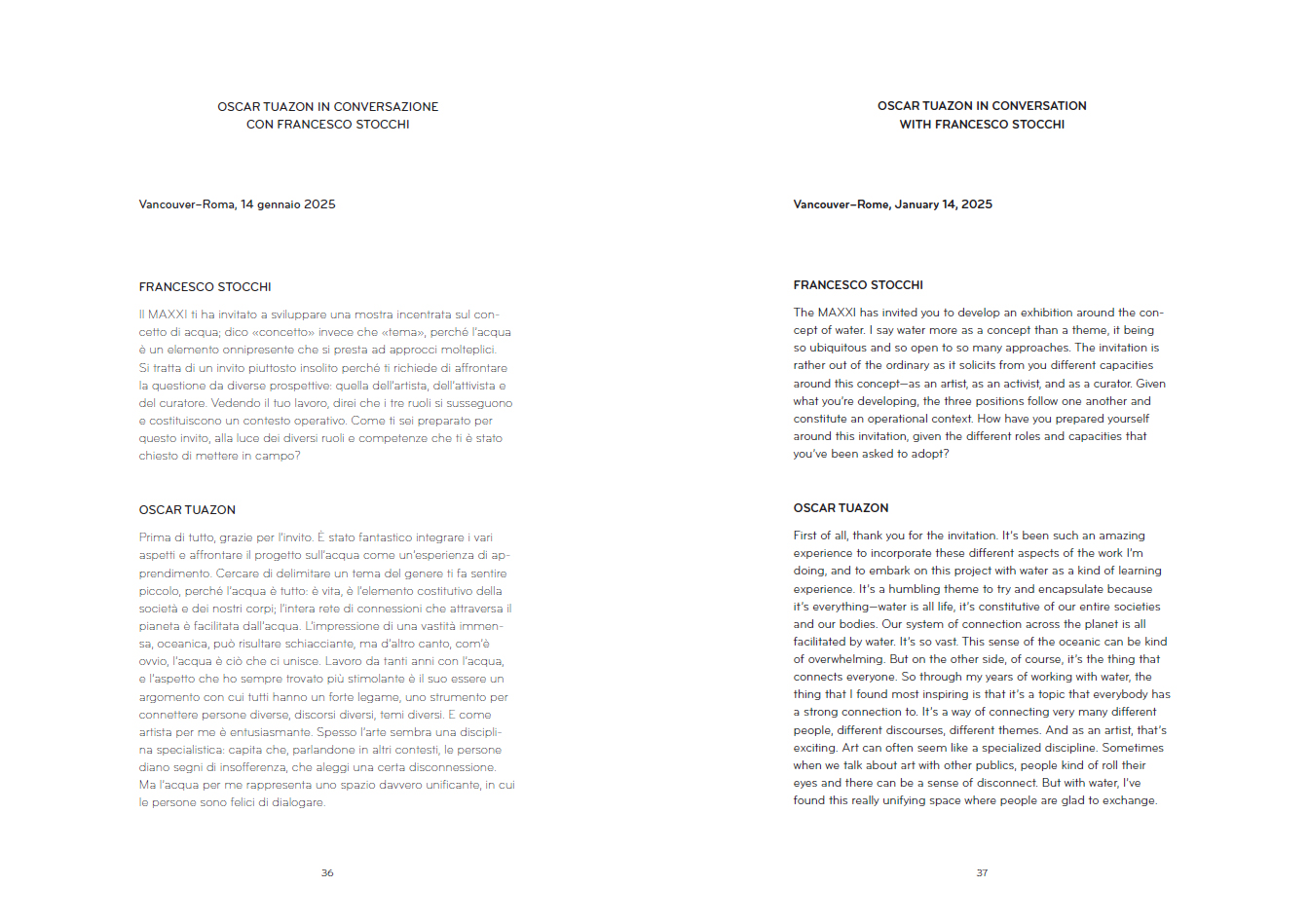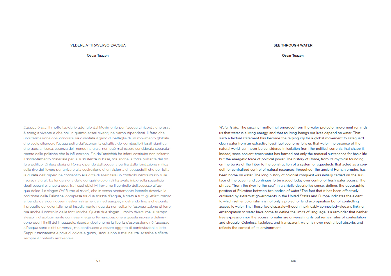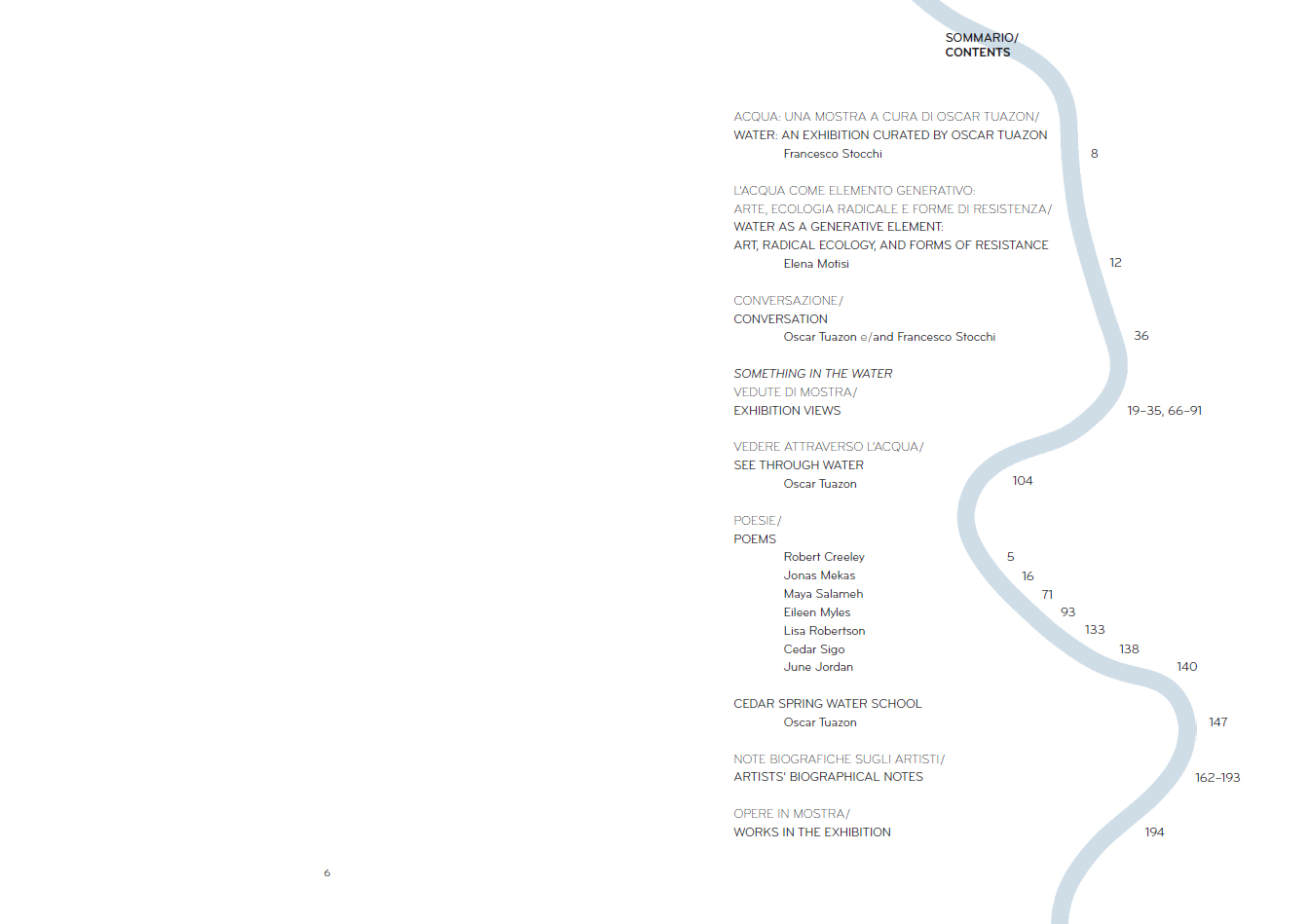 Something in the Water marks a new chapter in Oscar Tuazon's ongoing Water School project. Published on the occasion of the eponymous 2025 exhibition curated by the artist at MAXXI in Rome, the book serves as both a companion to and an extension of the exhibition.