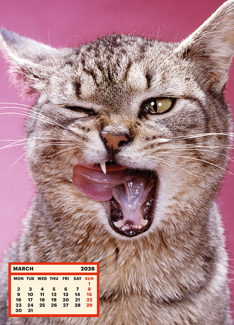 ToiletWalter PaperChandoha Calendar 2026 presents 13 photographs of sweet, polyamorous and sleepy cats by the American photographer