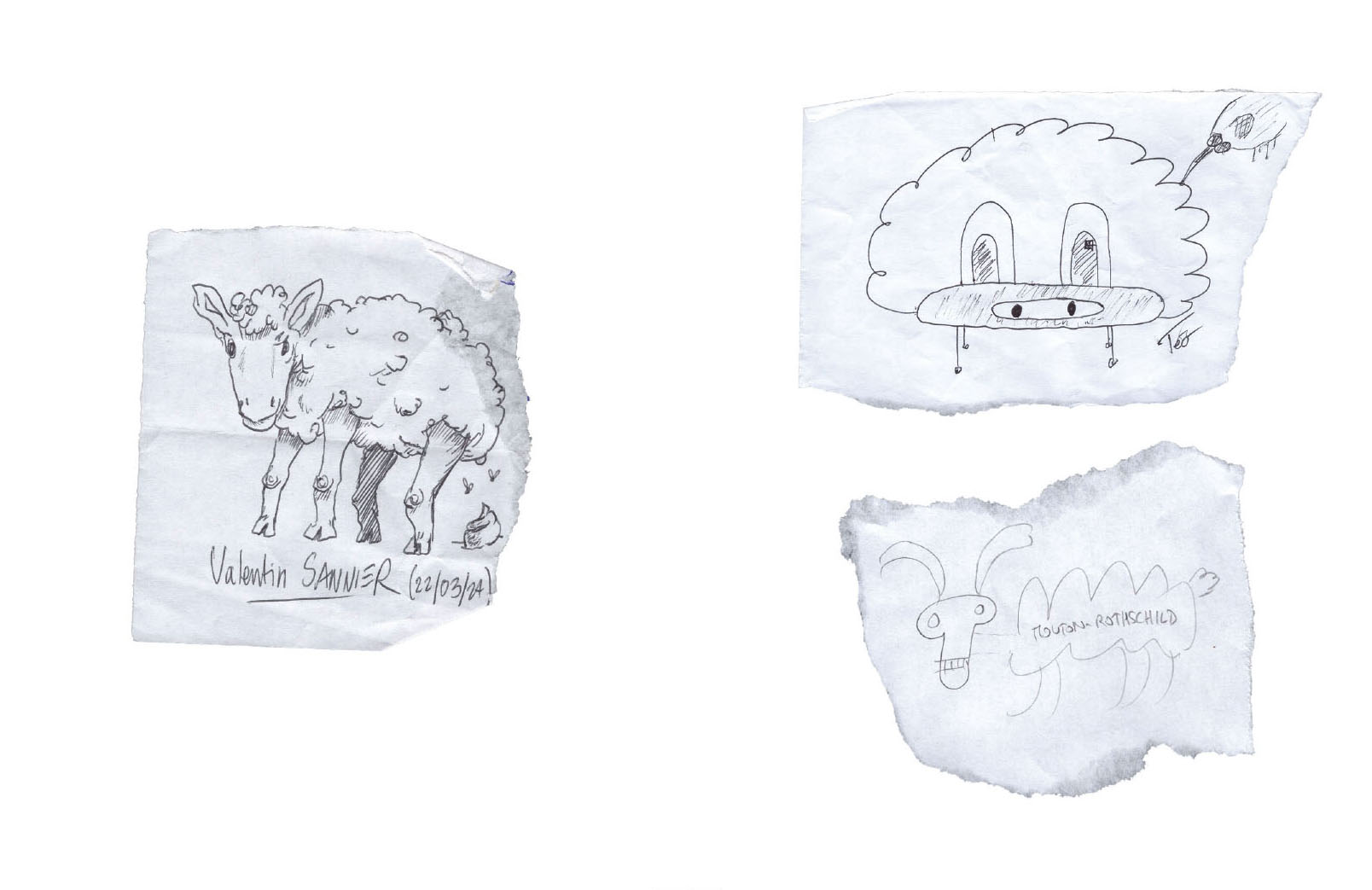 A selection of 96 drawings of sheep, obviously commissioned, with more or less confident lines.