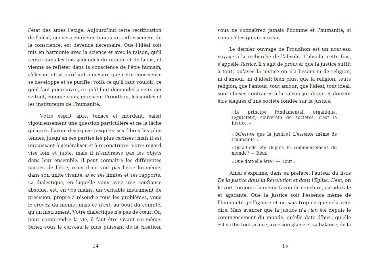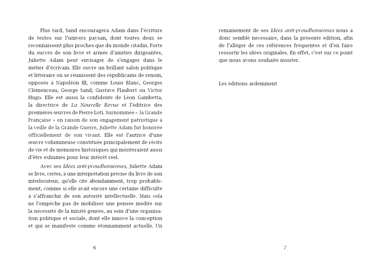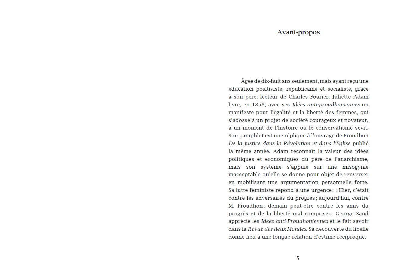 The emancipatory pamphlet by a young feminist (published in 1858 under the title Idées anti-proudhoniennes sur l'amour, la femme et le mariage) against the misogyny of Pierre Joseph Proudhon, father of anarchism.