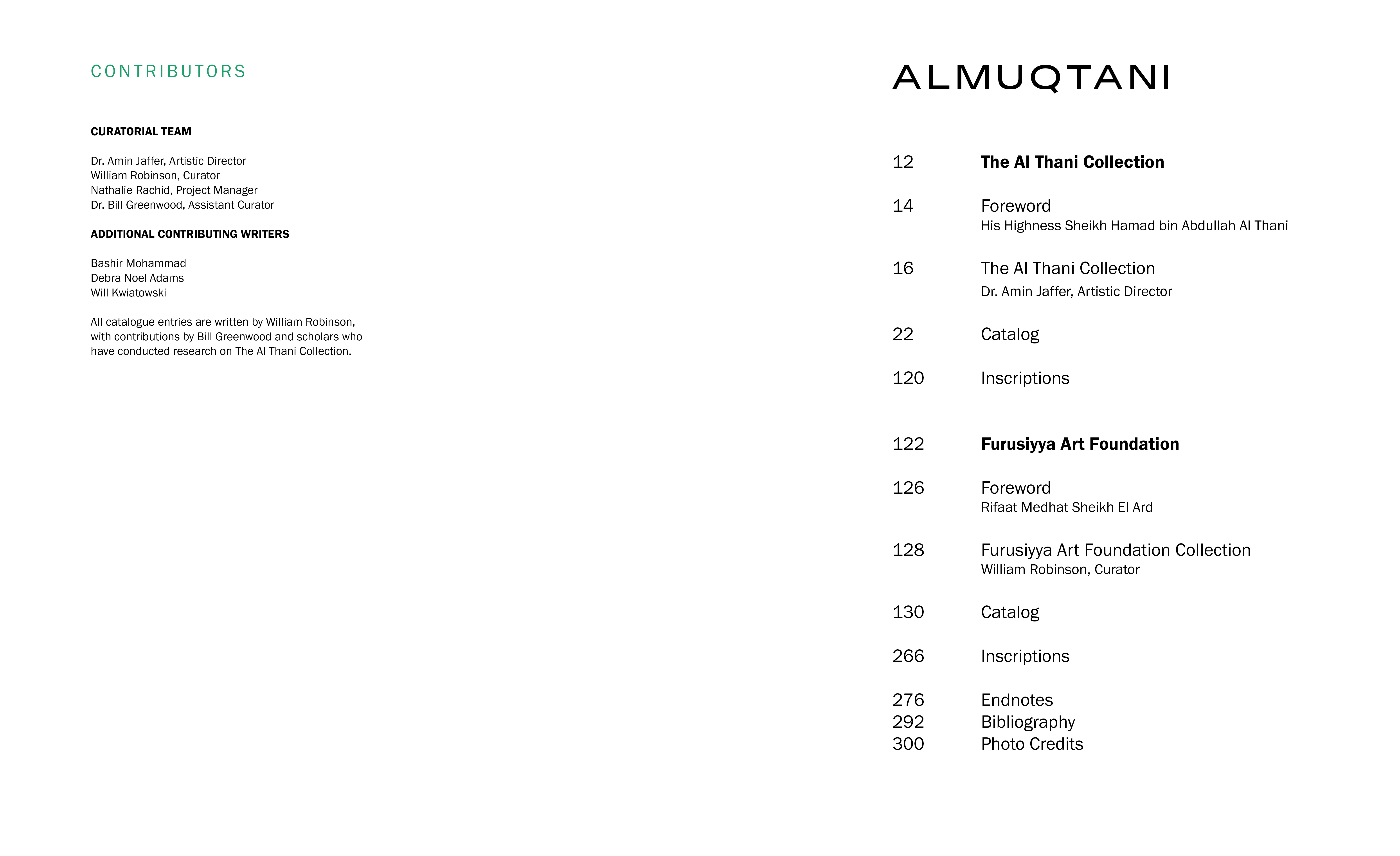 Foreword by Julian Raby, Amin Jaffer, Abdul Rahman Azzam, Muhannad Shono; contributions by Silke Ackermann, Juan Acevedo, Rizwan Ahmad, Sarah Al Abdali, Ali Akbar, Masa Al-Kutoubi, Abdul Rahman Azzam, Bilal Badat, James Bennett, Inês Bénard, Faye Behbehani, Heather Ecker, Marcus Fraser, Bill Greenwood, Amin Jaffer, Luitgard Mols, Purificación Marinetto Sánchez Ery Sustiyadi, Yahya Nurgat, Julian Raby, Mariam Rosser-Owen, Marika Sardar, Augusto Salgado, Ana Salazar Herrera, Muhannad Shono, Wen Wen.