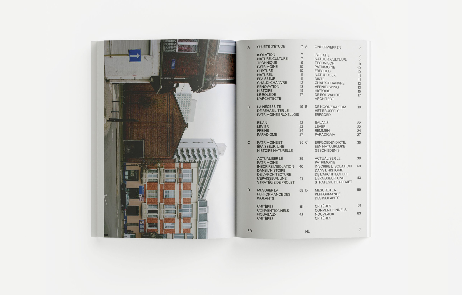The need to insulate existing buildings is an architectural opportunity. "Form follows insulation". This study explores the architectural languages emerging from the act of insulating, and questions the position and thickness of natural materials in heritage renovation. The research is being carried out in the Brussels-Capital Region, using the hemp-lime mix as a subject for reflection. The project is organized around two complementary strands. The first concerns practice. It includes a survey to establish the state of the art in the use of hemp-lime insulation in Belgium, and to identify locally available channels and resources. The second part is theoretical and experimental. Three Brussels archetypes of different period, type and scale are put to the test: through a series of formal experiments, the three residential buildings are transformed in the light of new thermal and material considerations. For each of them, insulation becomes one of the determinants of the shape of the floor plan and the uses to which it is put.
