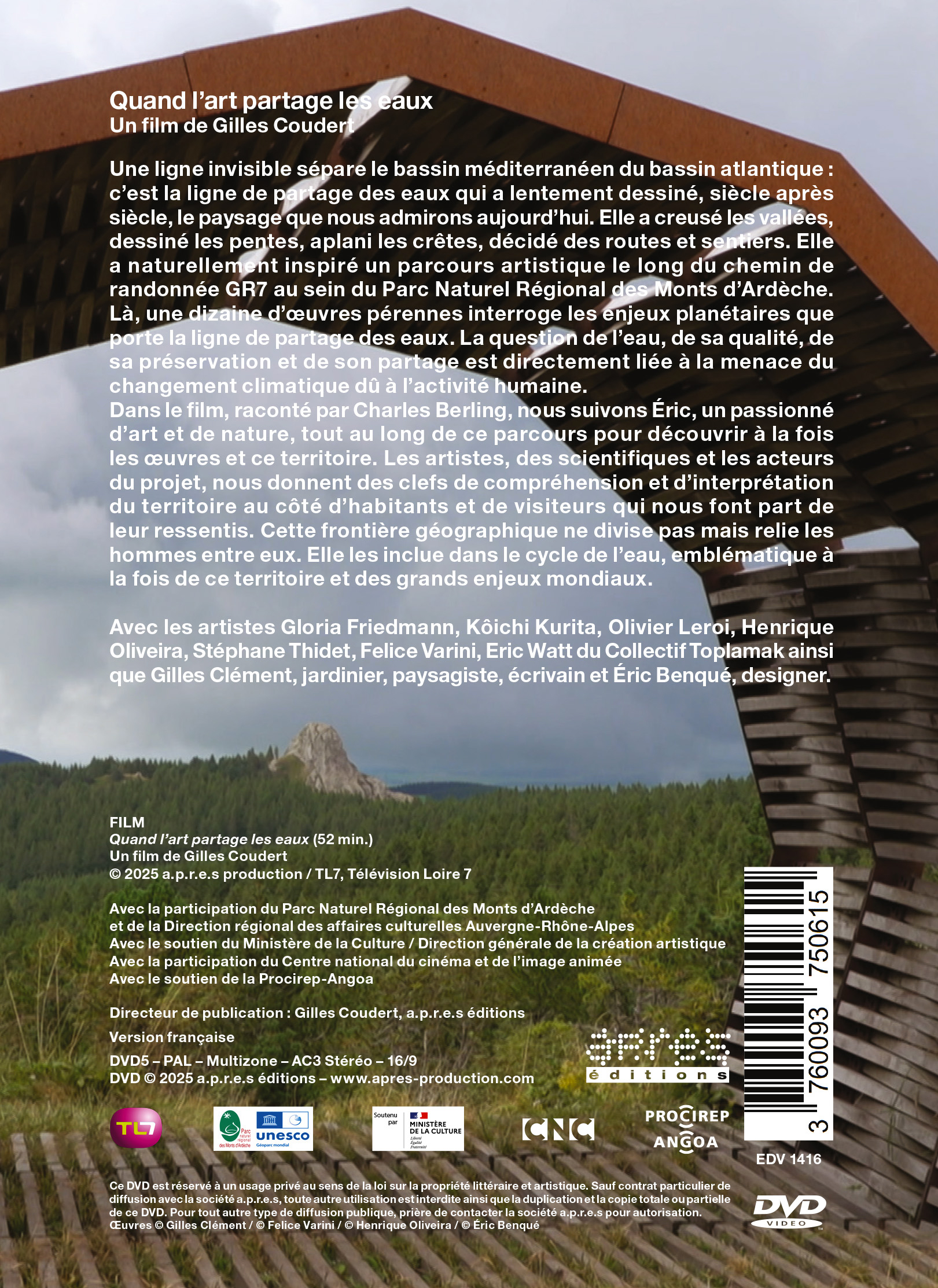 An invisible line separates the Mediterranean basin from the Atlantic basin: it is the watershed that has slowly shaped, century after century, the landscape we admire today. It has carved out valleys, outlined slopes, flattened ridges, and determined roads and trails. It naturally inspired an artistic journey along the GR7 hiking trail in the Monts d'Ardèche Regional Natural Park. There, a dozen permanent works examine the global issues raised by the watershed. The question of water, its quality, its preservation, and its sharing is directly linked to the threat of climate change caused by human activity. In the film, narrated by Charles Berling, we follow Eric, an art and nature enthusiast, throughout this journey to discover both the works and this territory. The artists, scientists, and project stakeholders give us keys to understanding and interpreting the territory alongside residents and visitors who share their feelings with us. This geographical border does not divide but connects people. It includes them in the water cycle, emblematic of both this territory and major global issues.