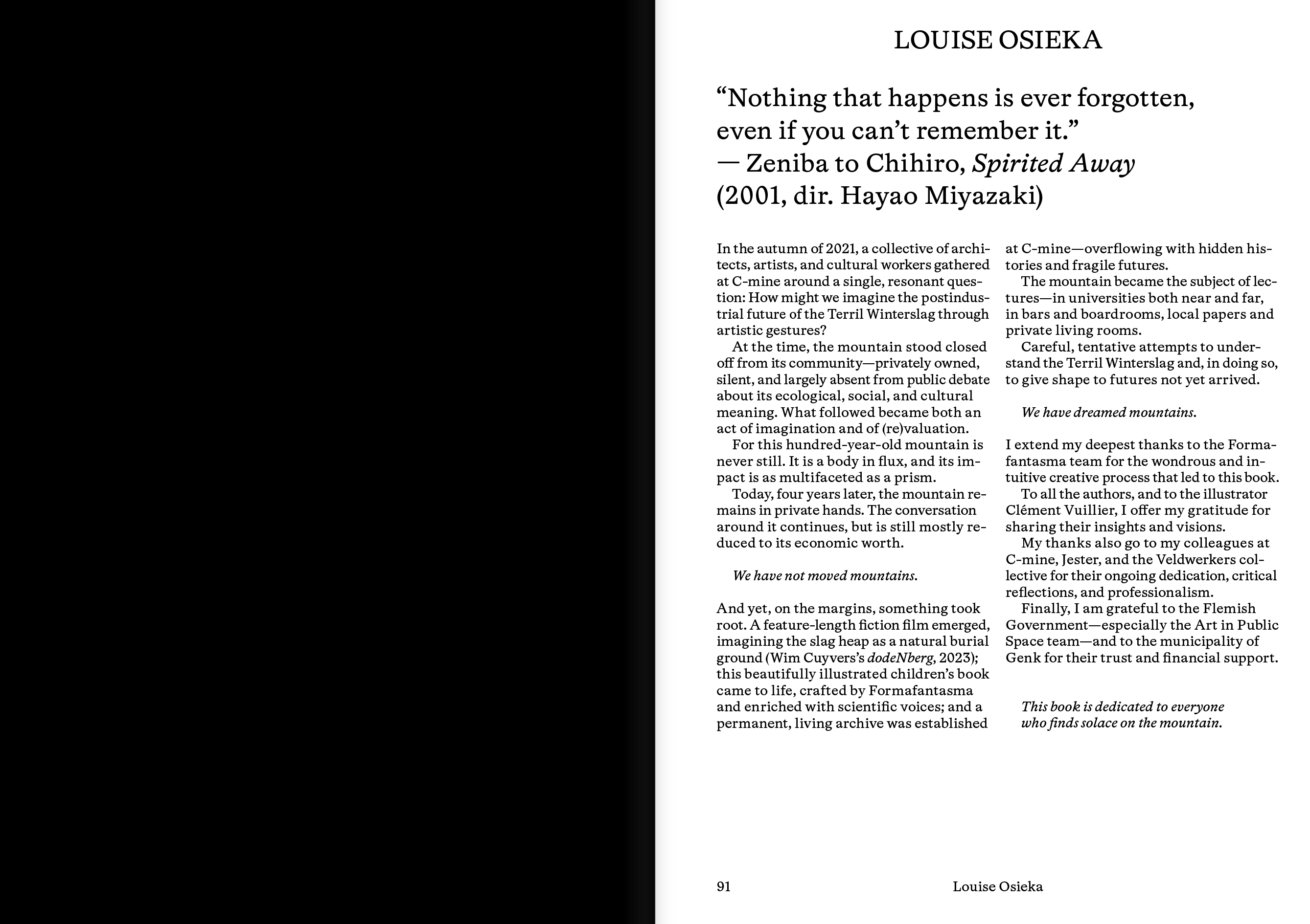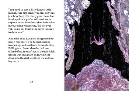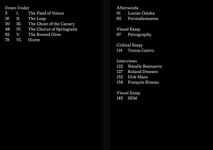 Structured in two parts, the book begins with a tale, illustrated by Clément Vuillier, about a child who, upon falling into a hole in an open field, embarks on a journey through the hidden layers of the Earth, encountering unexpected lifeforms that shift his worldview. The second part features contributions from scientists and educators who inspired the story, offering insights that challenge anthropocentric thinking: a critical essay by Teresa Castro and interviews made by Formafantasma to Natalie Beenaerts, Roland Dreesen, Dirk Maes, and François Rineau, alongside afterwords by Louise Osieka and Formafantasma.