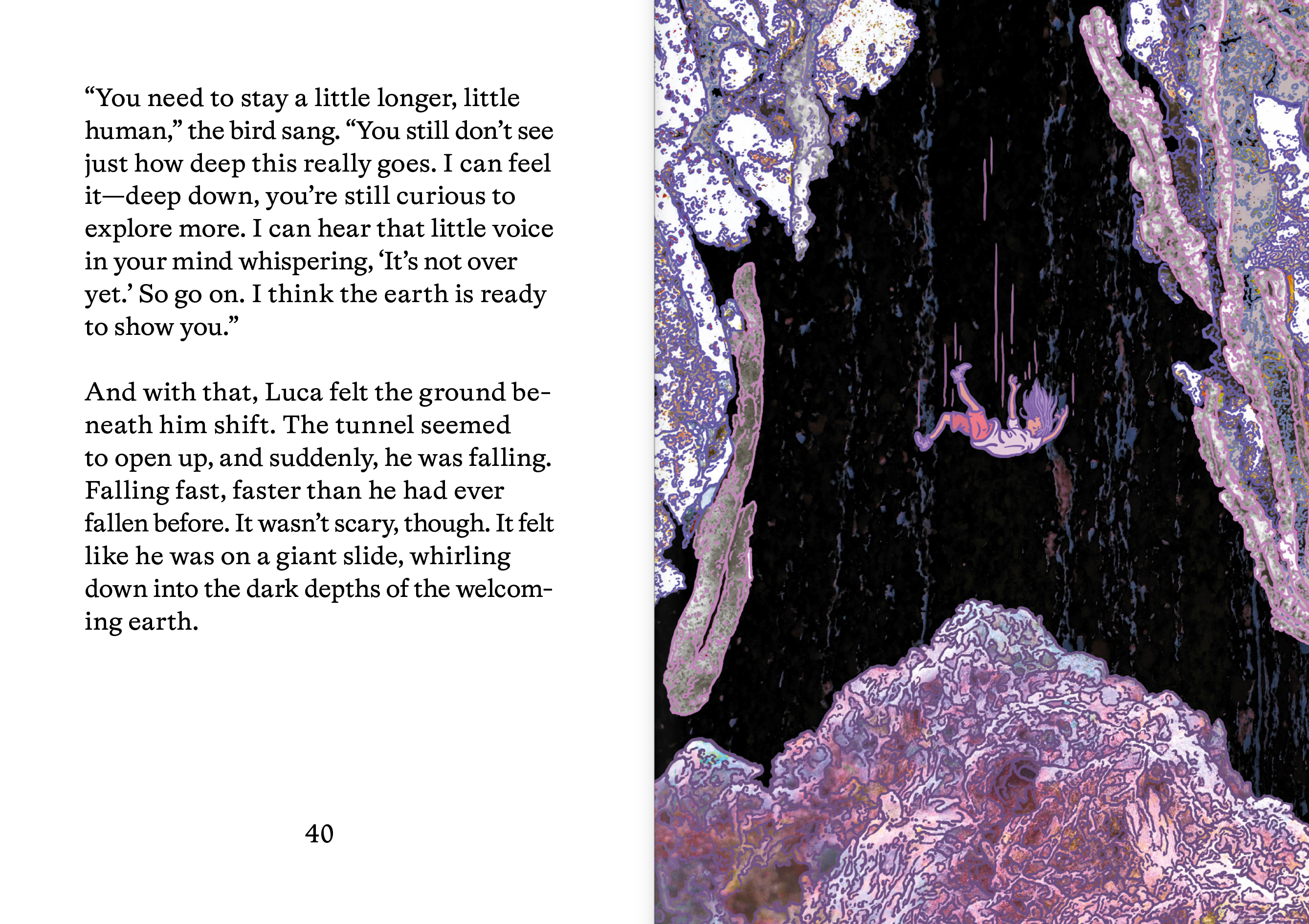 Down Under: The Curious Fall of a Child Who Knew Nothing and Became Everything is a picture book by the design studio Formafantasma blending fiction with scientific research to cultivate a new ecological literacy for both young readers and adults. Born out of a commission and residency program by C-mine exploring the nature and purpose of Belgium's postindustrial sites, it investigates the intricate relationship between humans, the environment, and other organisms.