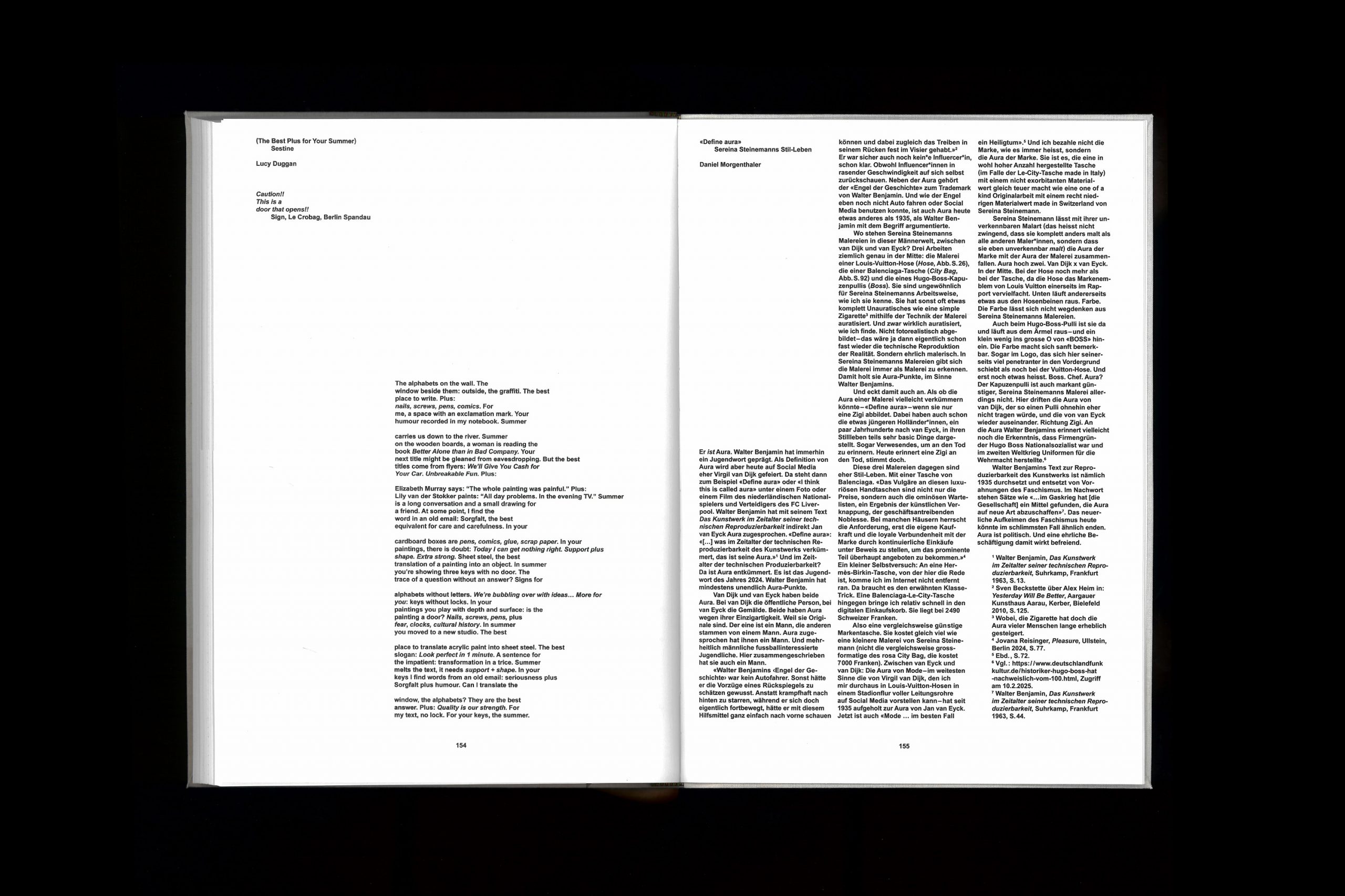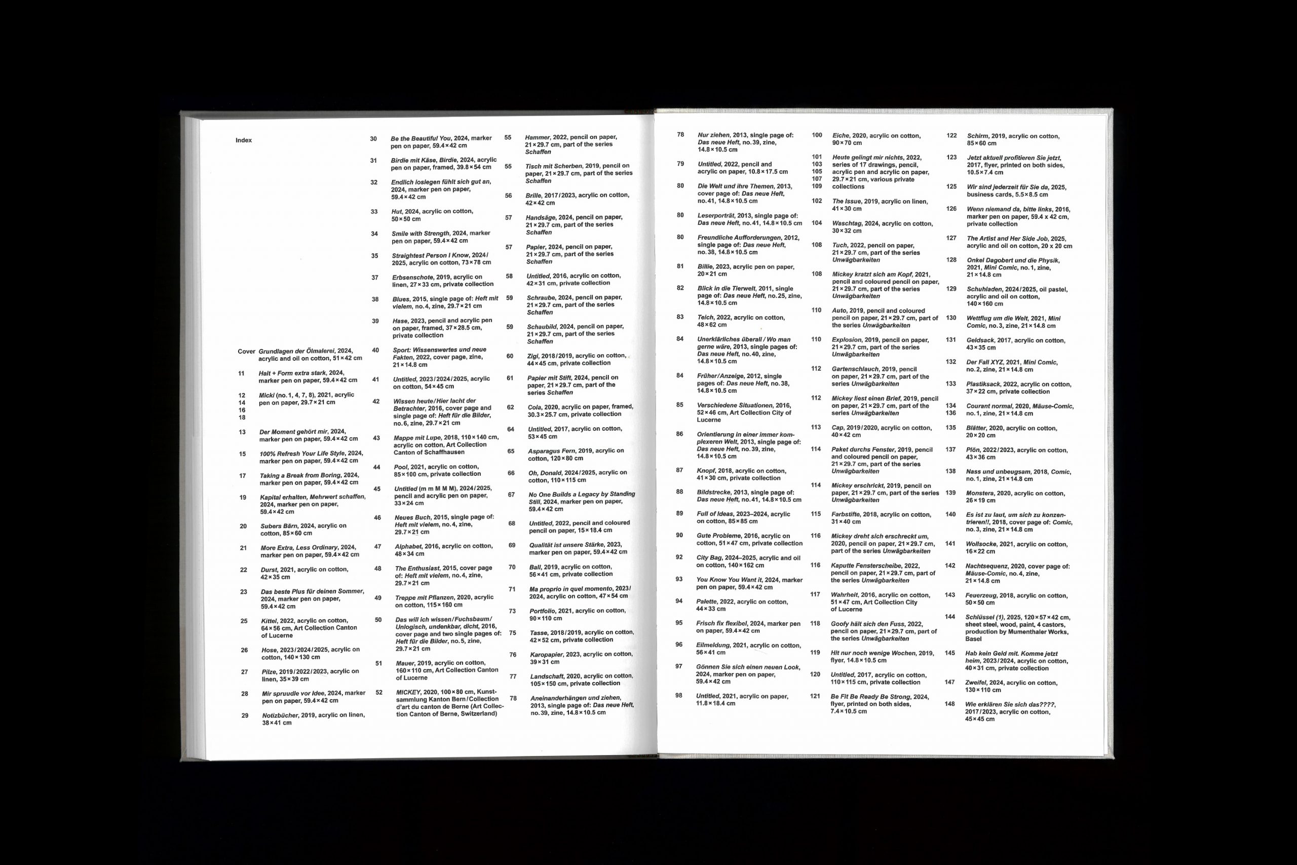 Sereina Steinemann (born 1984 in Richterswil) is a Swiss artist who works in various media and paints both non-objectively and figuratively. What her works have in common is a great formal clarity and the (often humorous) play with forms between professional production and visible handwriting. With her conceptual approach—whether in painting, drawing or in booklets and books, on postcards and posters—she's always interested in the specific possibilities of the respective media. In this way, she places colors and shapes, found and her own pictures and titles, non-fiction photographs and poetry next to and in relation to each other and thus gains unusual insights into the interaction of the individual elements in a book, an acrylic painting, an encyclopedia or an installation.