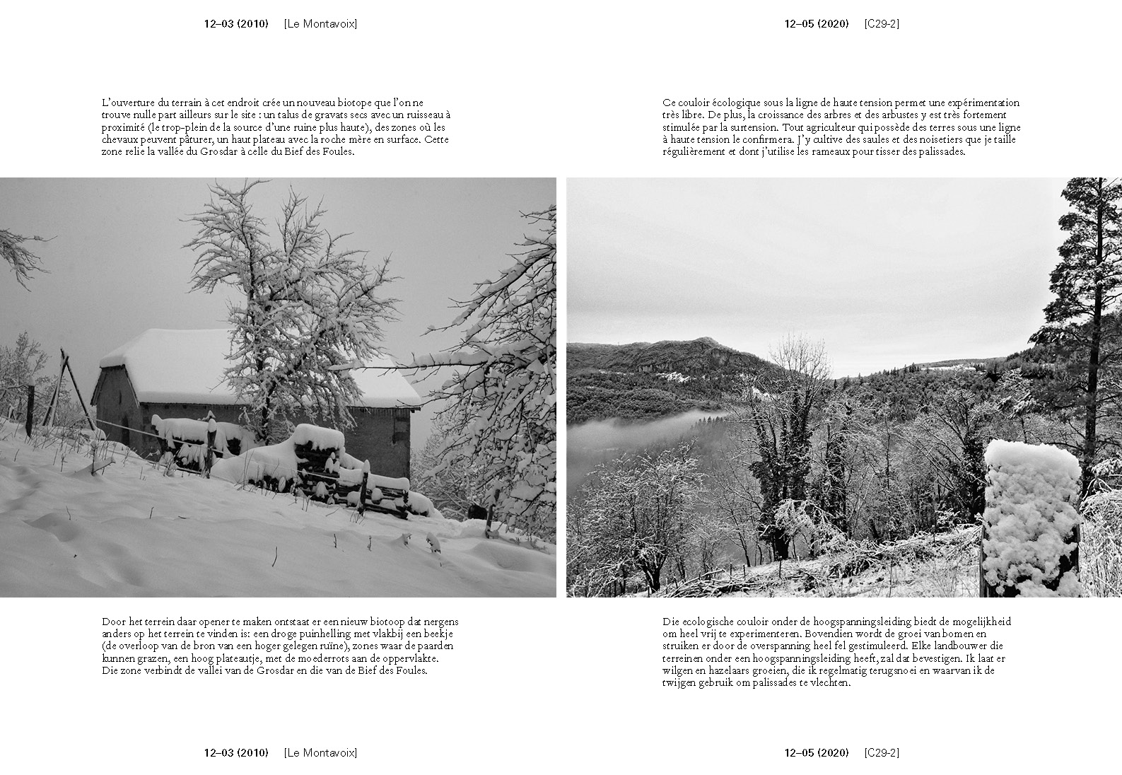 Res Nullius is the third artist book by Wim Cuyvers published by MASEREEL – centre for contemporary art (Kasterlee, Belgium). The book is about Le Montavoix, the terrain on which Wim Cuyvers has literally and figuratively been working for almost twenty years. The book consists of a collection of 200 landscape photographs, an axonometric perspective of the terrain and a number of texts that accompany the photographs. In the book, Cuyvers further develops the position that architecture is made up of those spaces that lead us outside instead of sheltering interior spaces.