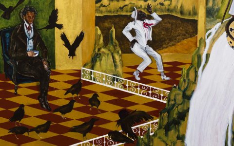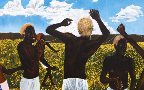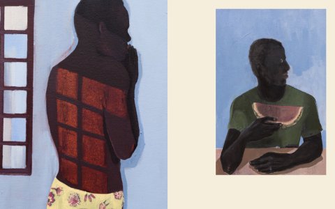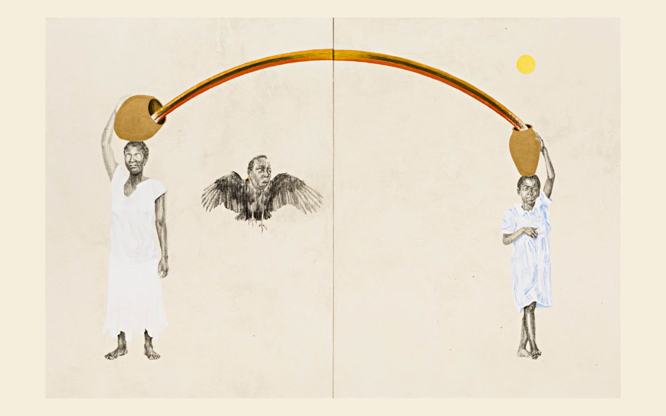 The two essays commissioned for the occasion analyze the complexity of these layered signifiers. Lorraine Mendes's essay "Every Boy Is a King" offers an in-depth analysis of Obá's religious syncretism. It suggests an interpretation of its layered symbols, particularly the sankofa and the deity Exú, both of which pay tribute to the artist's West African roots. Above and beyond the specific cultural contexts of this iconography, the author emphasizes the universal value of Obá's work, its evocative, transformative, dynamic power, which—like music or dance—knows no national boundaries or barriers.