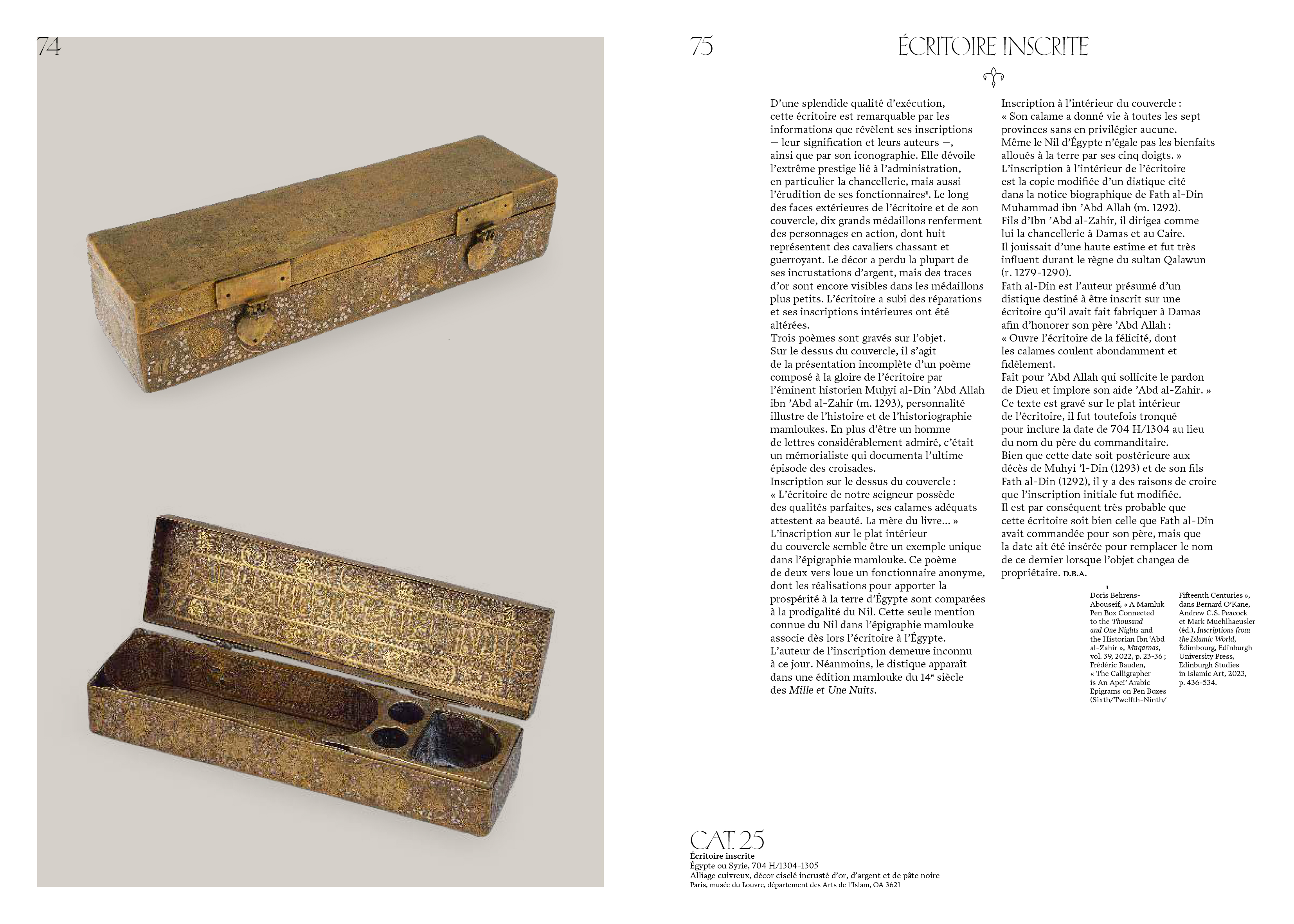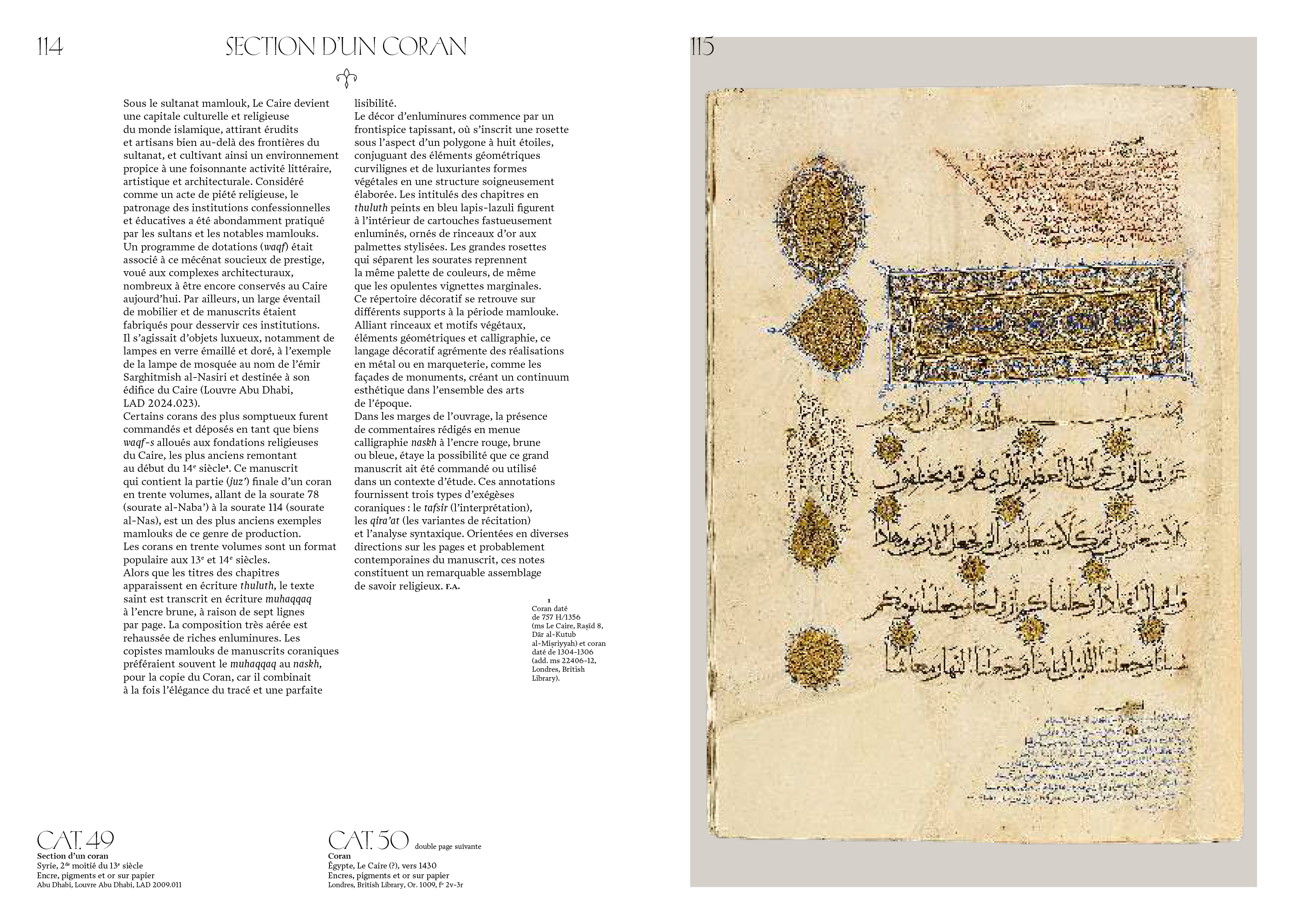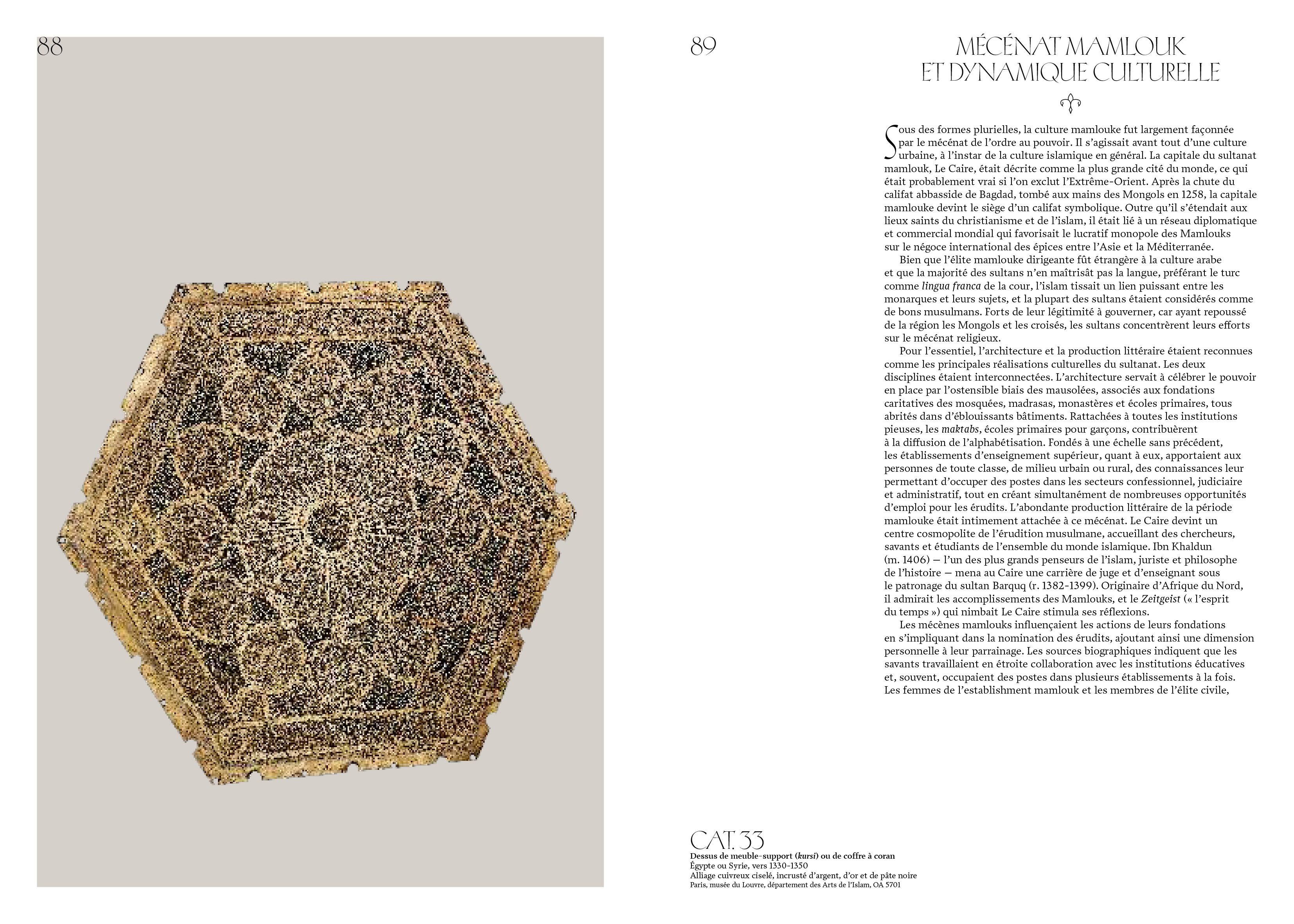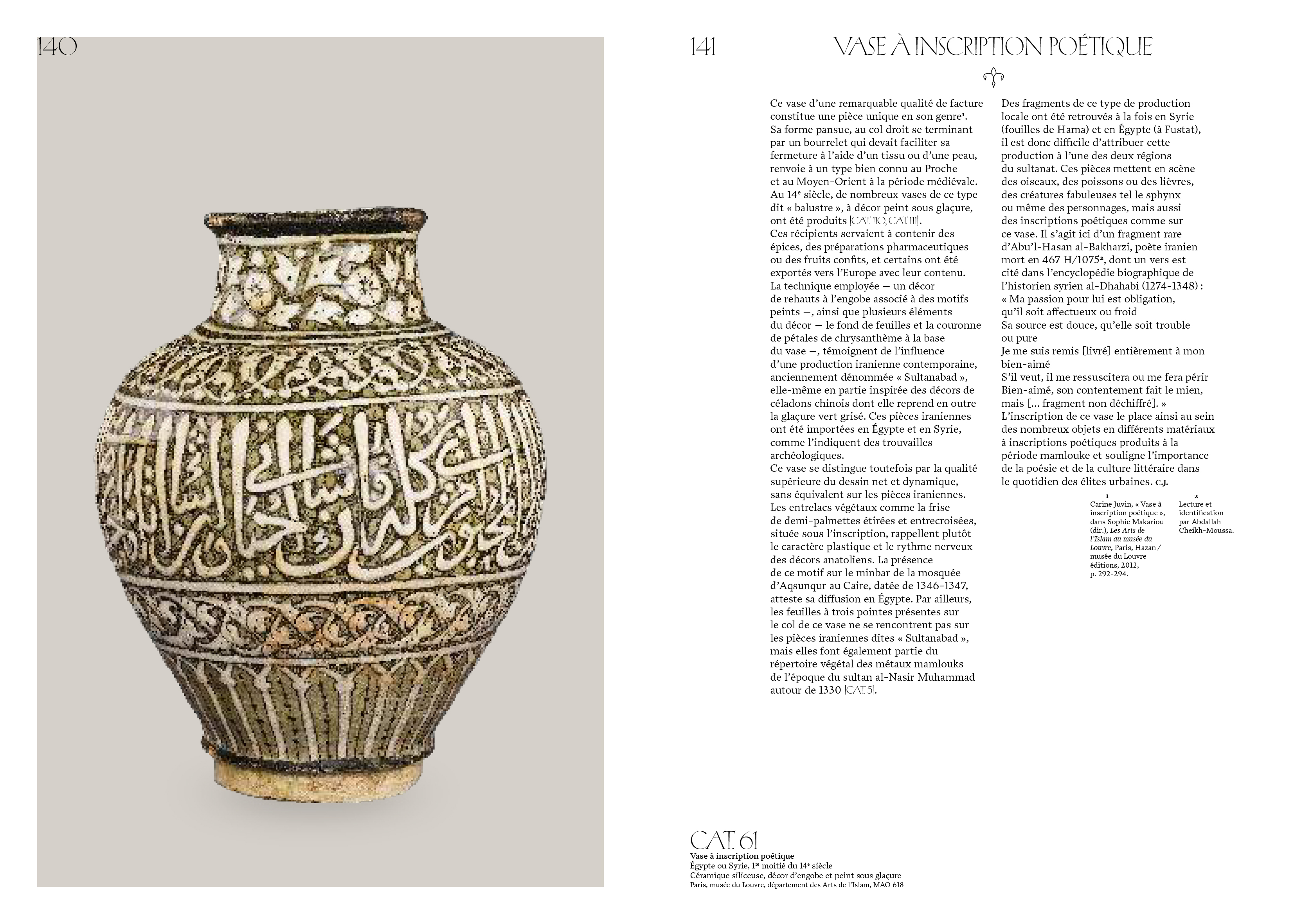Introduction by Carine Juvin and Souraya Noujaim; foreword by Guilhem André; contributions by Carine Juvin, Souraya Noujaim, Guilhem André, Mohamed Khalifa Al Mubarak, Manuel Rabaté, Hervé Barbaret, Sandra Lagumina, Laurence des Cars, Noel Adams, Mariam AlDhaheri, Fakhera Alkindi, Doris Behrens-Abouseif, Mounia Chekhab-Abudaya, Aida El Khiari, Shireen Ellinger, Finbarr Barry Flood, Michael David Antony Franses, Adeline Laclau, Joachim Meyer, Bashir Mohamed, Mina Moraitou, Alison Ohta, Nasser Rabbat, Maria Sardi, Élodie Vigouroux.